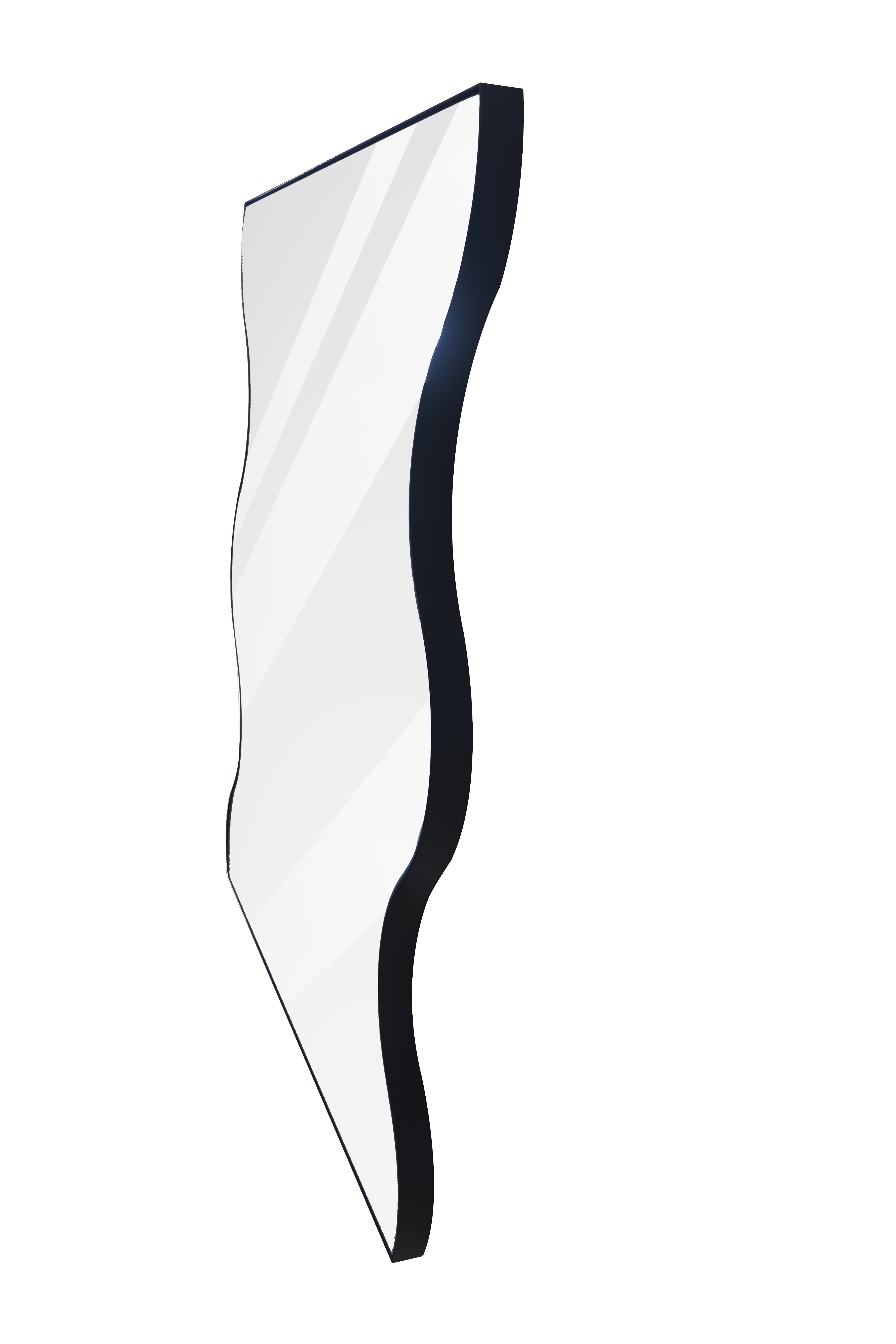 Enhance the beauty of your space with this 30x35 Inch Black Rectangular Wall Mirror. Featuring a unique wavy metal frame, this mirror adds a modern and sophisticated touch to any room. The versatile design makes it perfect for use as a vanity mirror, dressing mirror, or as a stylish decor piece for your bathroom, living room, or bedroom.