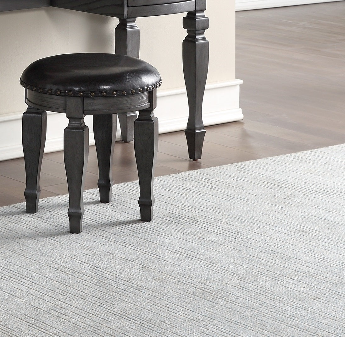 Bedroom Classic Vanity Set Wooden Carved Mirror Stool Drawers Antique Grey Finish