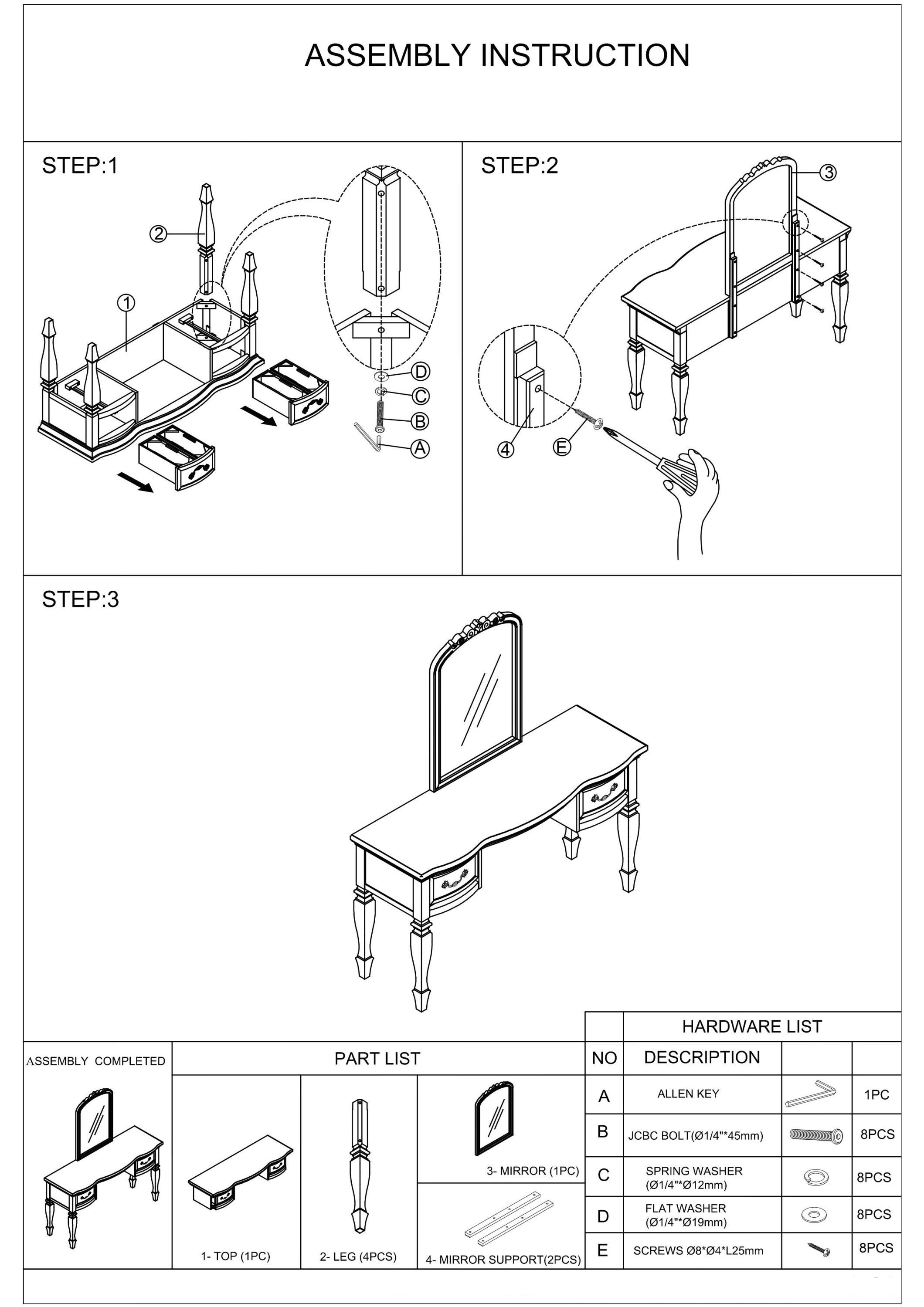 This luxurious yet classic vanity set brings the charm to your living space. The classic mirror frame matches with the table carving details create a vintage look. This vanity set also comes with a matching stool that creates comfort while doing makeup or your hair. Available in beautiful Grey, antique oak, black, and antique white.