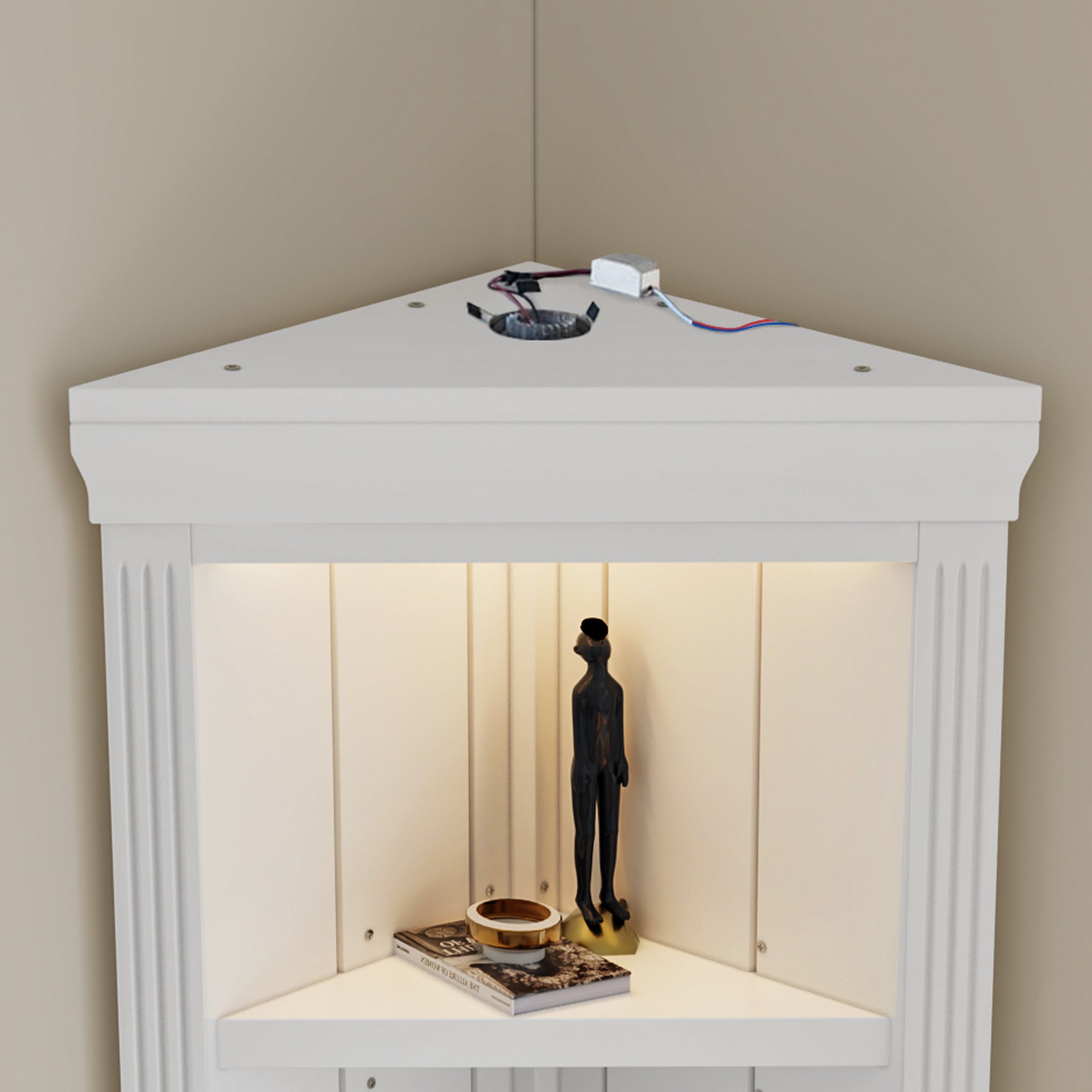 - Equipped with 3 adjustable protective feet to accommodate uneven floors, along with an anti-tip kit for securing the display shelf to the wall, this ensures not only stability but also enhances the safety features of the corner bookshelf.
