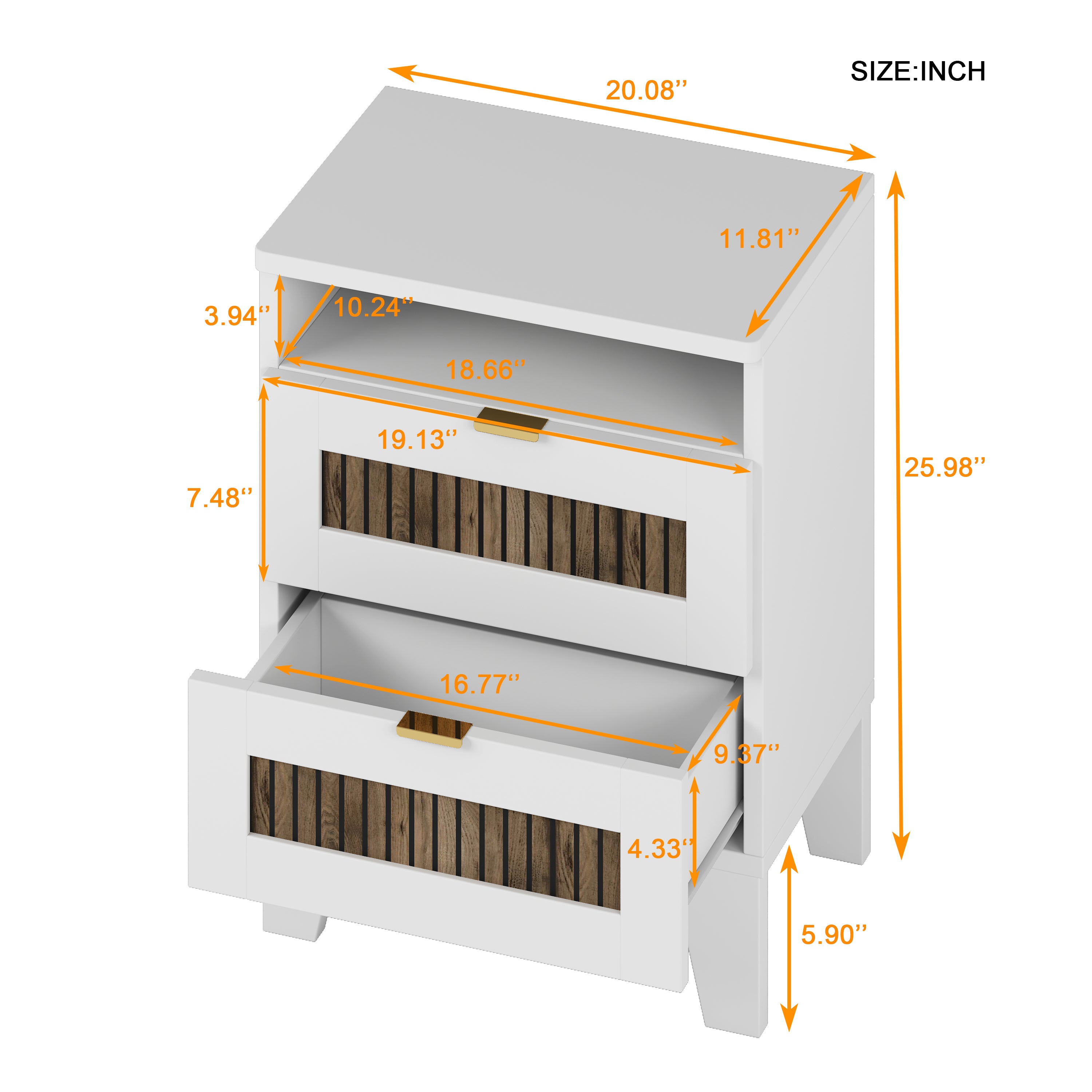 - Rustic Farmhouse Charm: Enhance your bedroom decor with the rustic elegance of our 2-Drawer Farmhouse Wooden Nightstand, featuring charming wooden strip decoration and a timeless white finish.