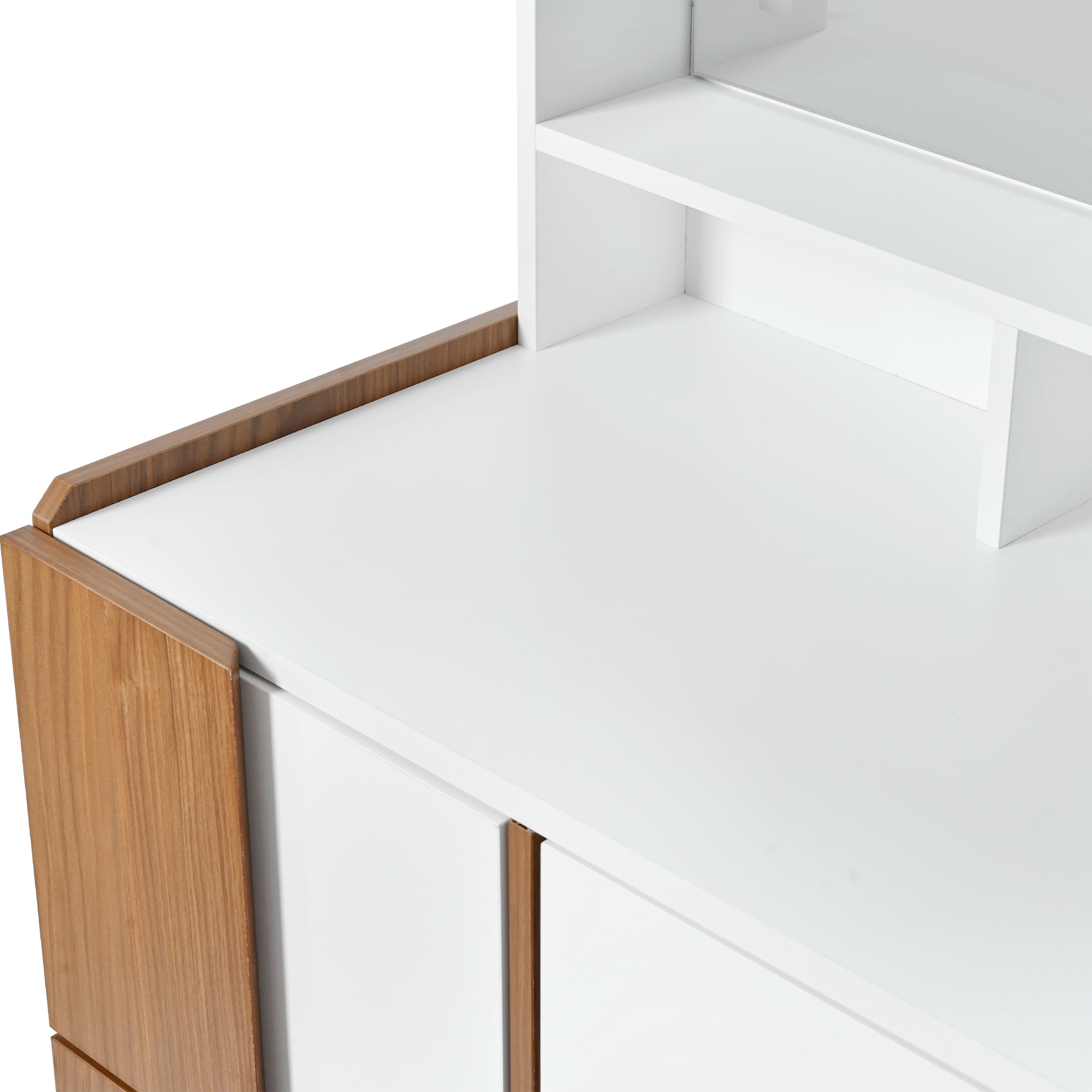 • Stylish Appearance: This dressing table features a stylish white and brown color-block design, adding a touch of sophistication that complements any décor. It's the perfect addition to elevate the look of your room.