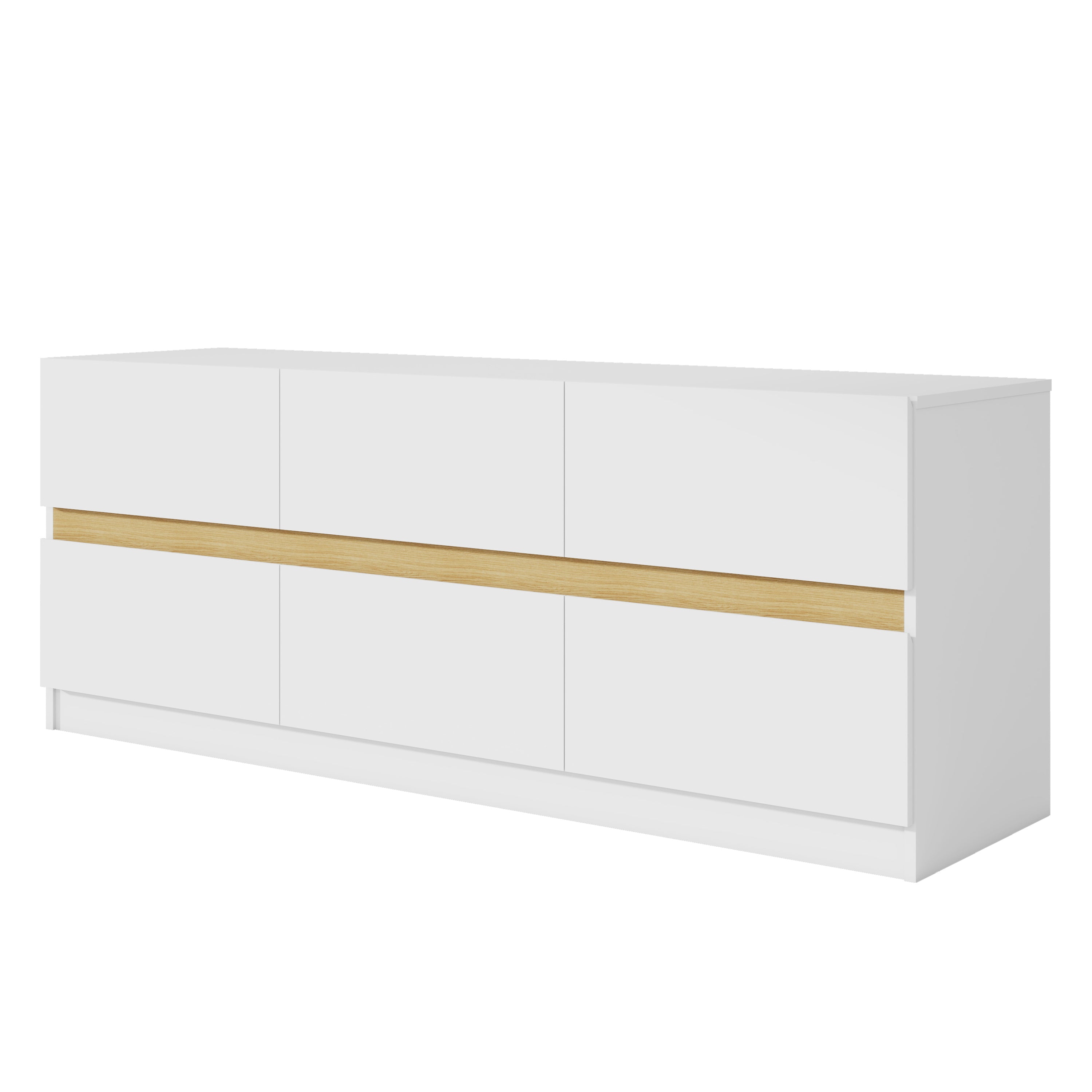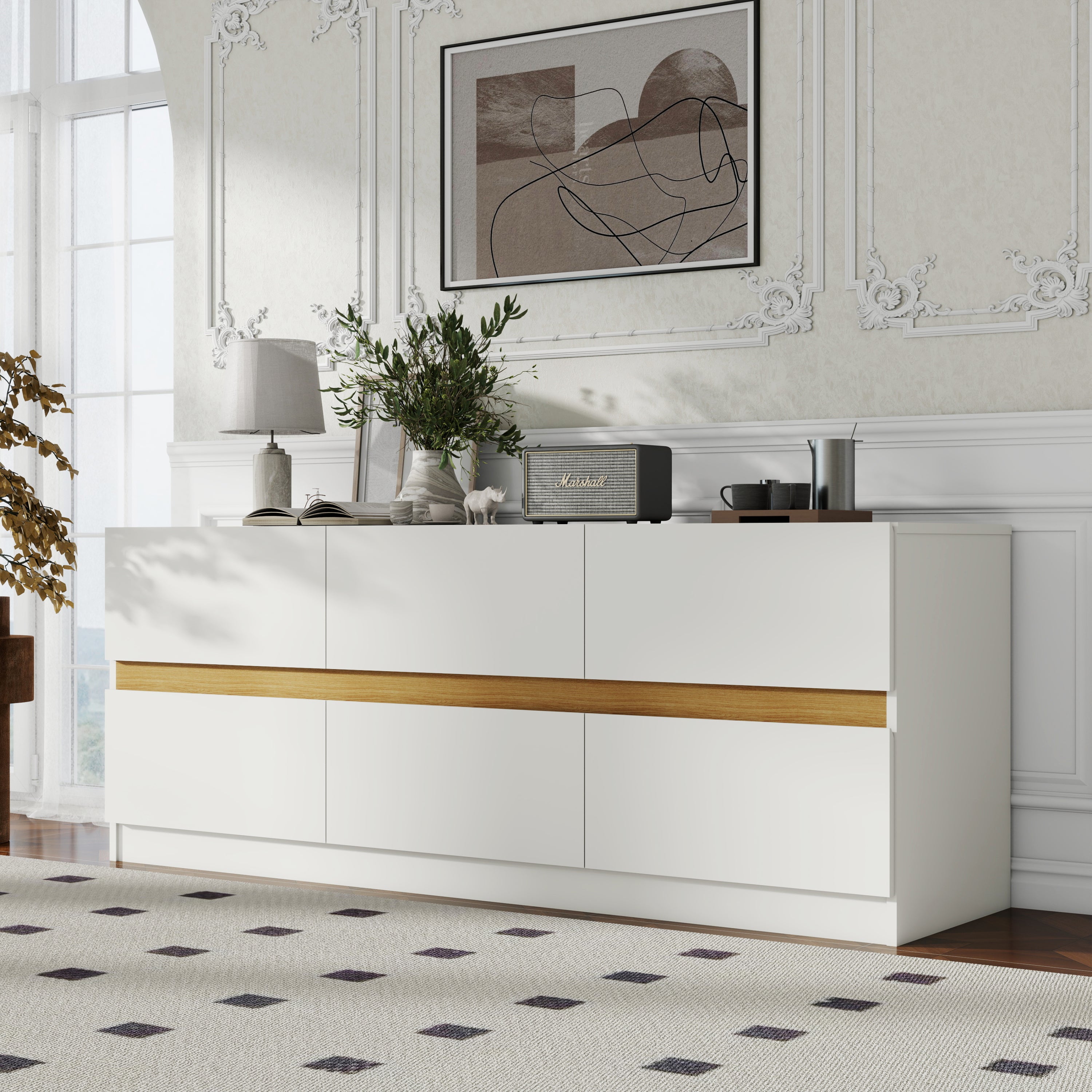 6 Drawer Wood Dresser for Bedroom, W59.06in x D16.34in x H23.03in, White