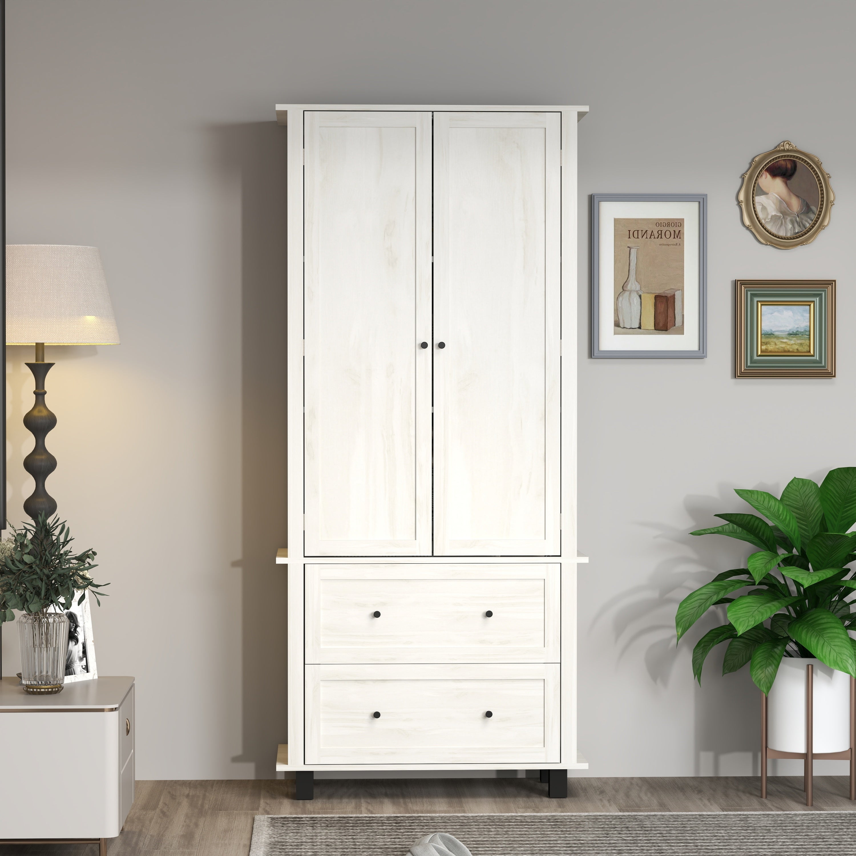 70" Tall Kitchen Pantry Storage Cabinet with 2 Drawers and 3 Shelves, Minimalist Wood Large Storage Cabinet for Kitchen, Dining Room, Living Room, Bathroom (Antique White)
