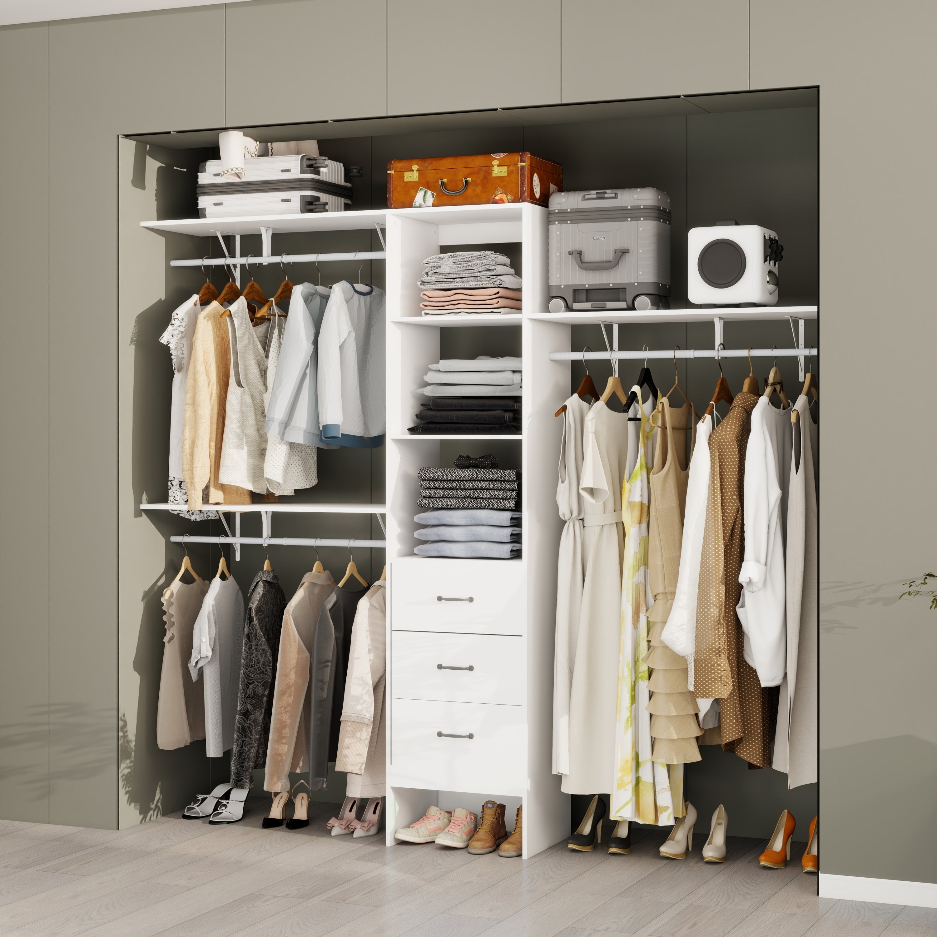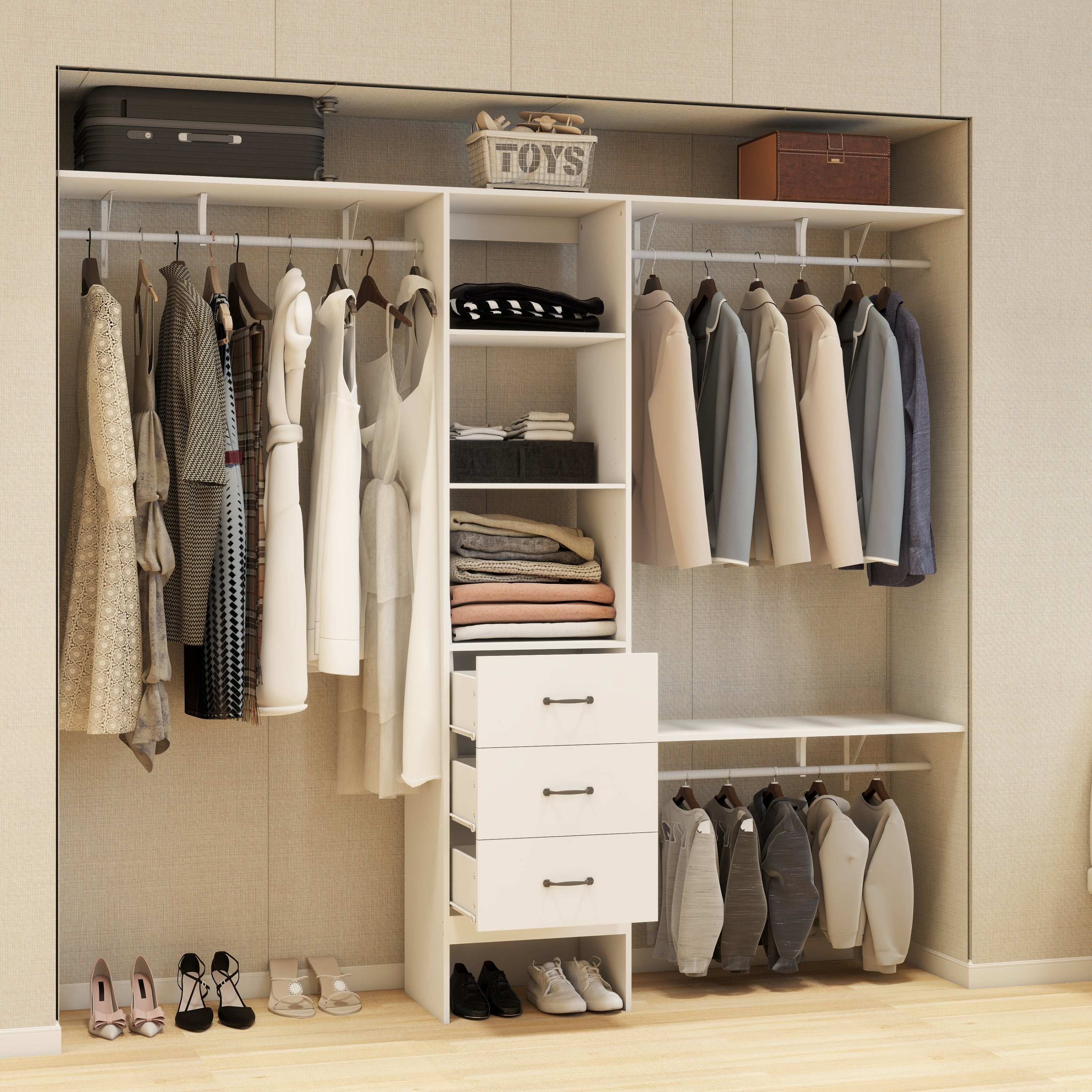 96 Inches Closet System, 8FT Walk In Closet Organizer with 3 Adjustable Shelves & 3 Expandable Hanger Rods & 3 Drawers, Built-In Garment Rack, 96"L x 16"W x 82"H, Load 1000 LBS-White