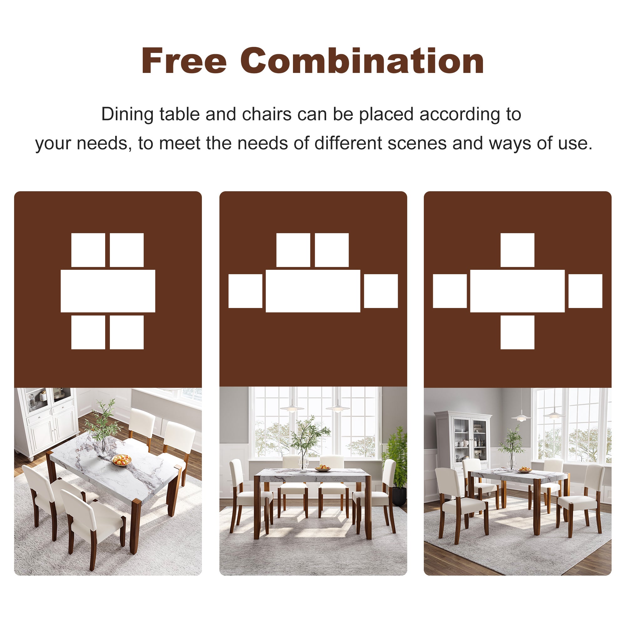 - 4 PIECE DINING TABLE SET】: This dining table features a modern design with a realistic faux marble pattern, presenting the natural beauty of faux marble and adding a touch of sophistication to your space. The solid wood material ensures that the product is not heavy and easy to install and transport.