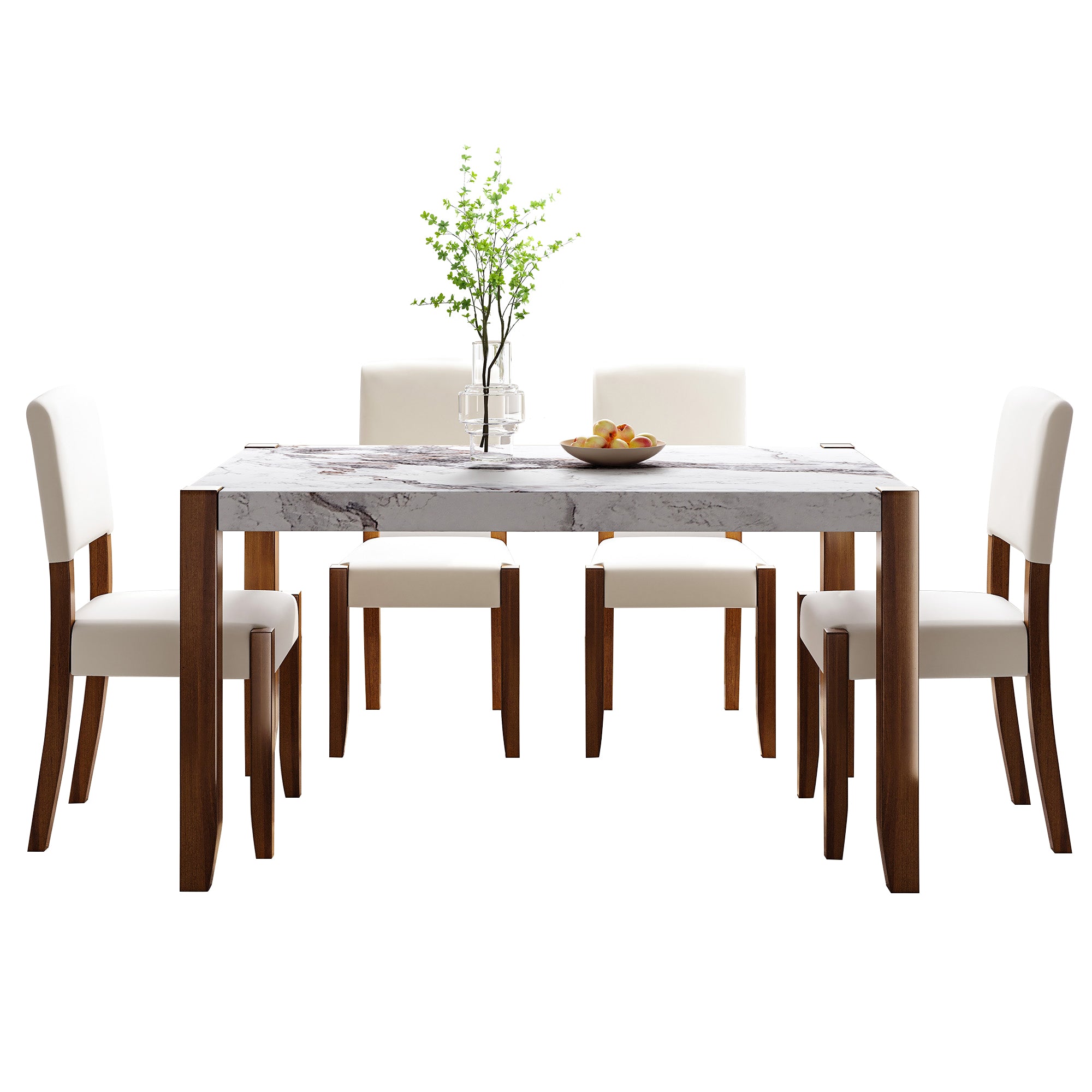 5-Piece Modern Dining Furniture Set, 4-Person Space-Saving Dinette for Kitchen, 46" Faux Marble Style Table and 4 Upholstered Chairs with Solid Rubberwood Legs