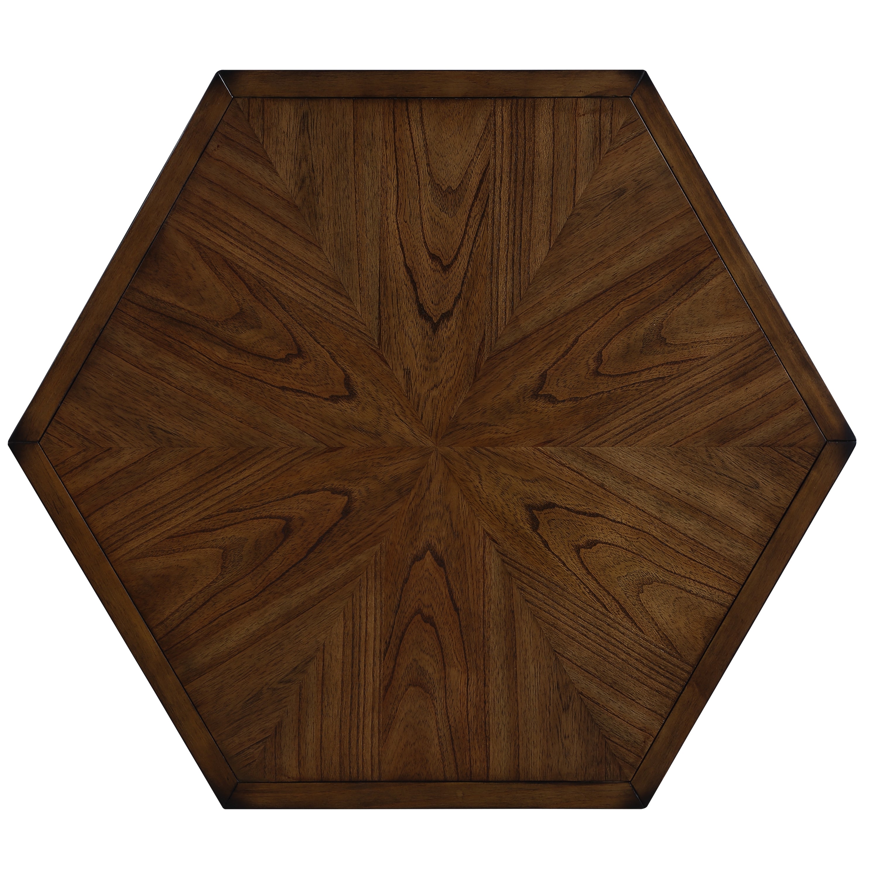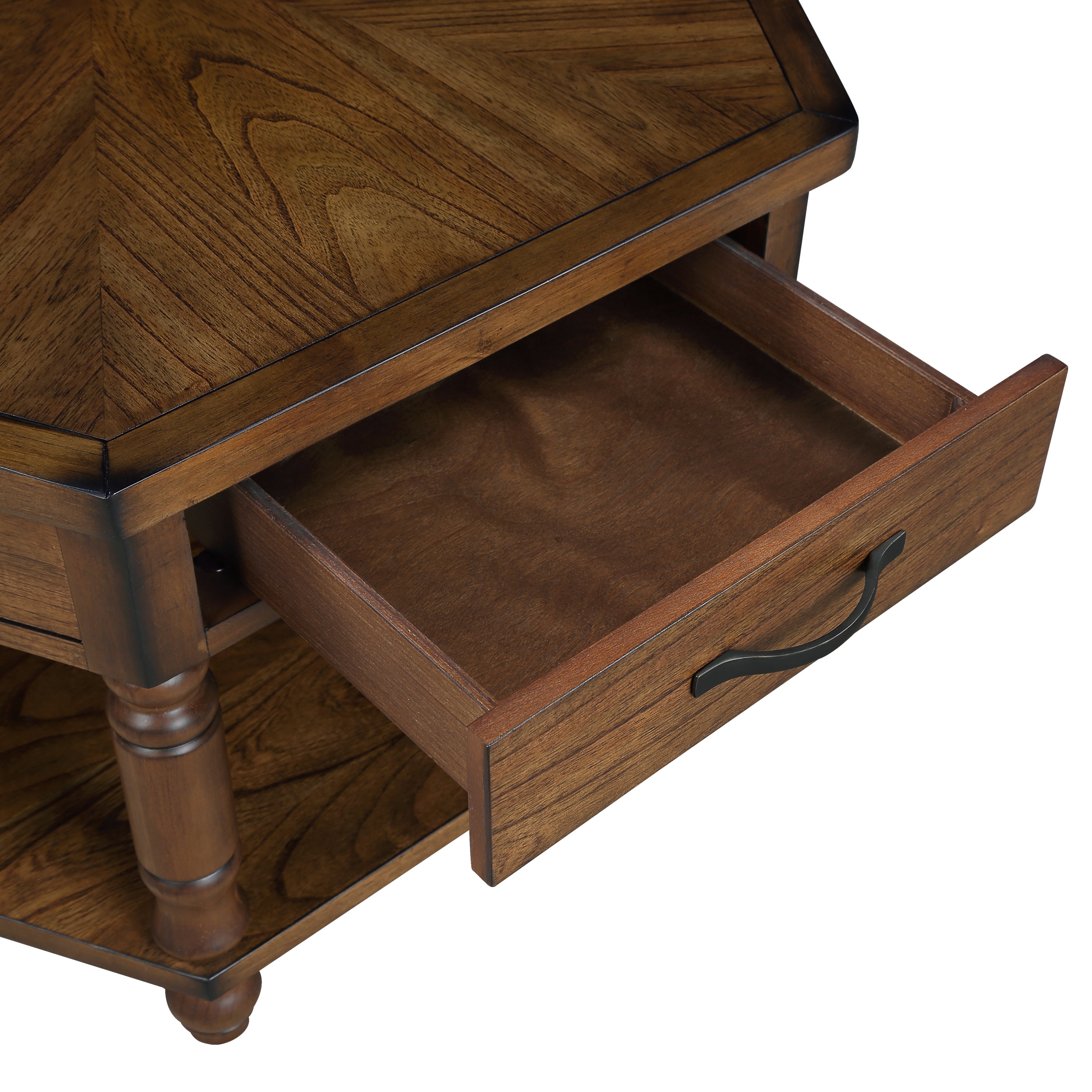 Add a touch of vintage charm to your home with this 2-Tier Retro Hexagon Coffee Table. Crafted from solid wood, this mid-century modern coffee table combines style and functionality. The unique hexagon shape and cherry finish make it a standout piece in your living room, office, or study. With a convenient shelf and drawer, it offers ample storage space to keep your essentials organized, while the 36'' length provides plenty of surface area for drinks, decor, and other items. Perfect for those who appreciate both aesthetics and practicality in their furniture.