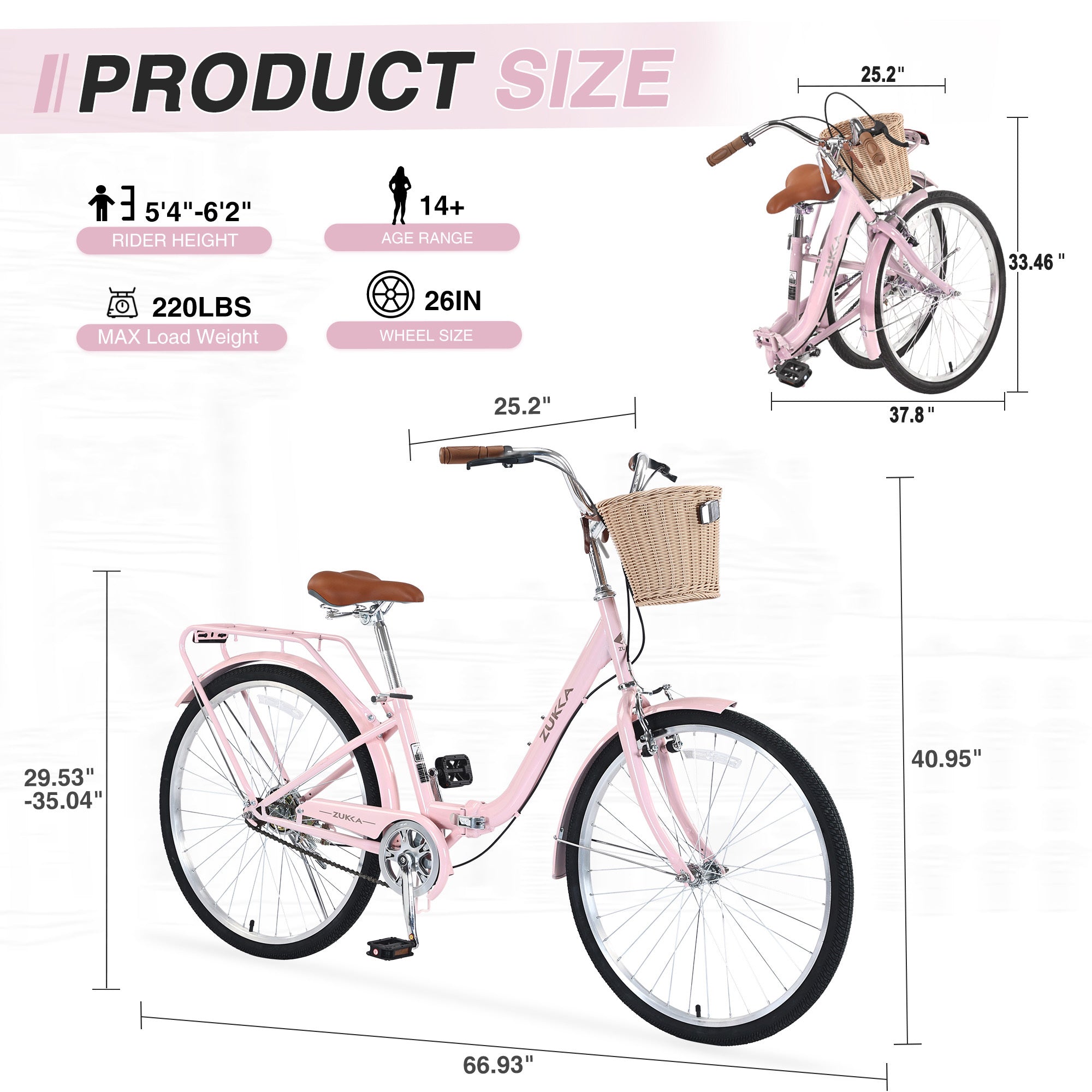 - 26 inch Folding Frame is easy to fold and does not take up a lot of space at home, easy to carry or store in the trunk of the car