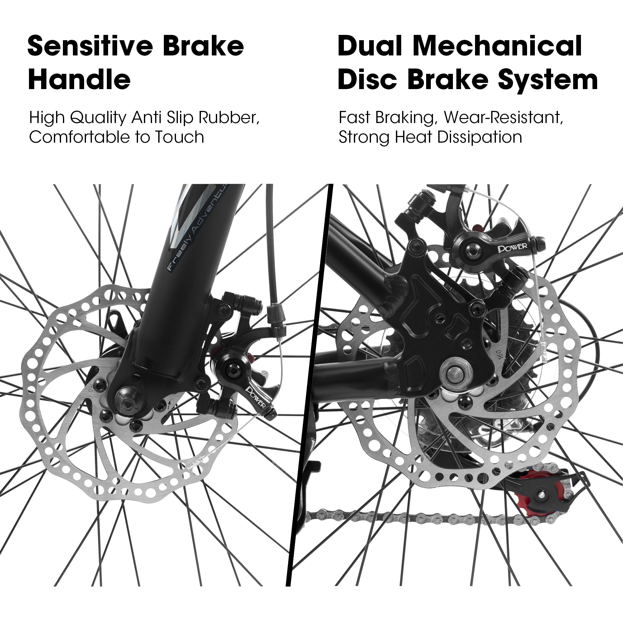 • 【Brake&Shifter】Front and rear disc brakes ensure timely and effective braking,provide you better durability and stopping power for your rugged and damp adventures.The 21-speed drivetrain with Shimano shifters and Trigger Shifter allows you to find the most comfortable and efficient gear for the kind of road.
