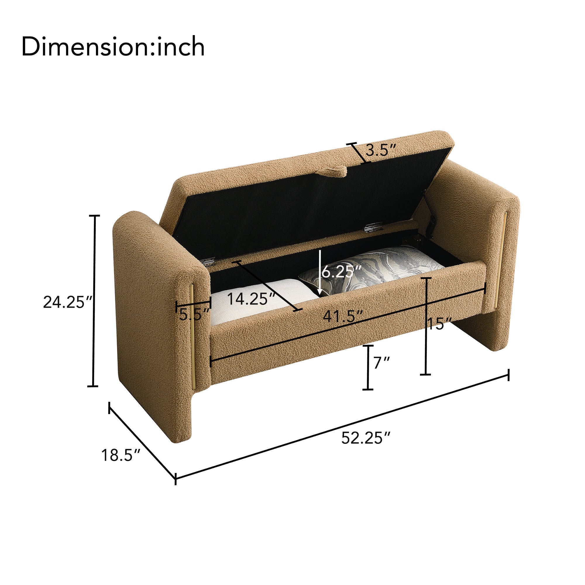 The large storage compartment provides plenty of space for blankets, pillows, or other essentials, helping you declutter your living area while adding a cozy touch. Whether used at the foot of your bed or as a statement piece in the living room, the Teddy Coffee fabric adds a soft and inviting look to any home.