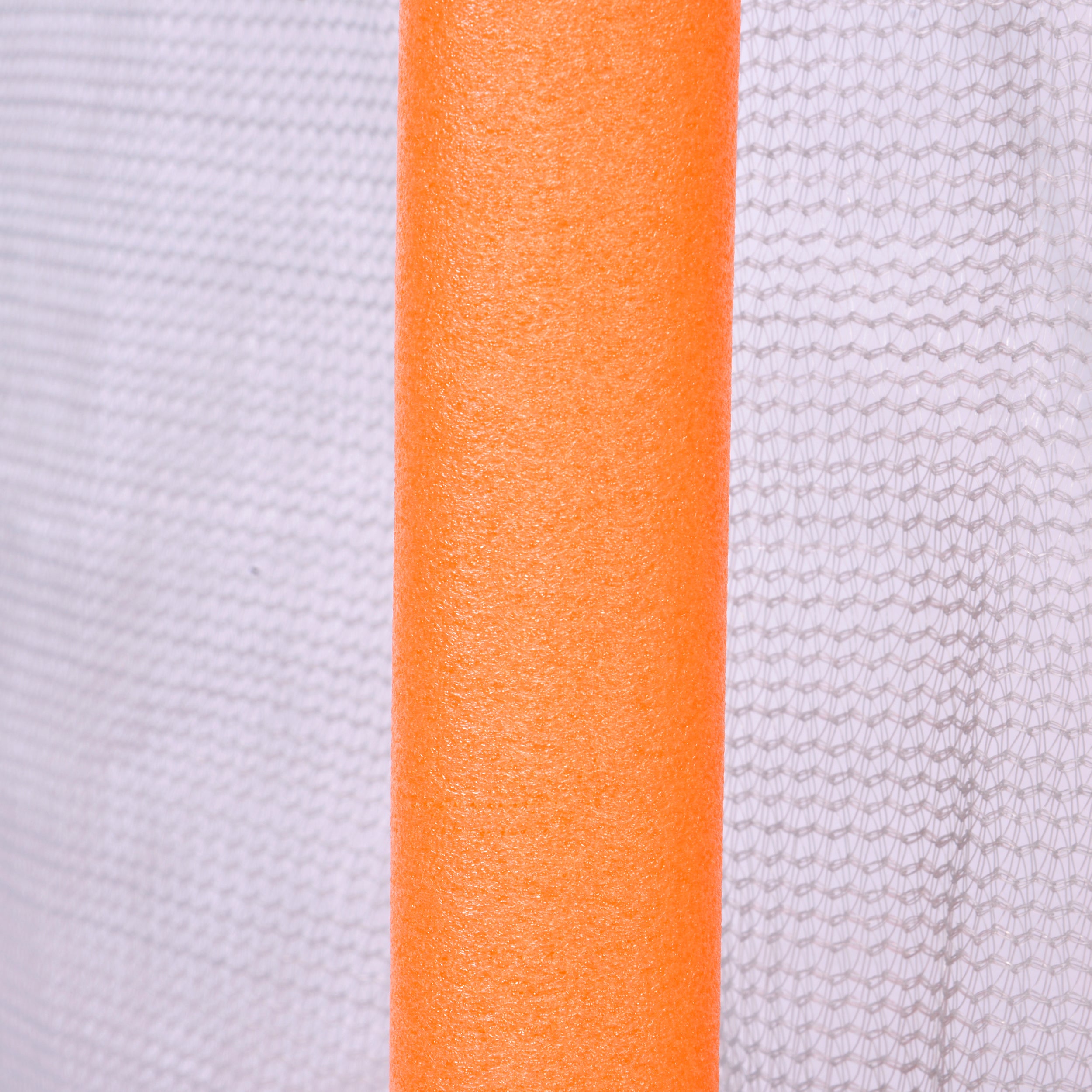 - SAFE & DURABLE - Large-sized galvanized steel structure, foam-padded poles and safety net ensure safety while jumping in the trampoline. Reinforced T-sockets stabilize the upper enclosure frame, high-quality pad protector is sewn to the mat and covers the safety springs, no need to worry your kids feet get stuck while playing.