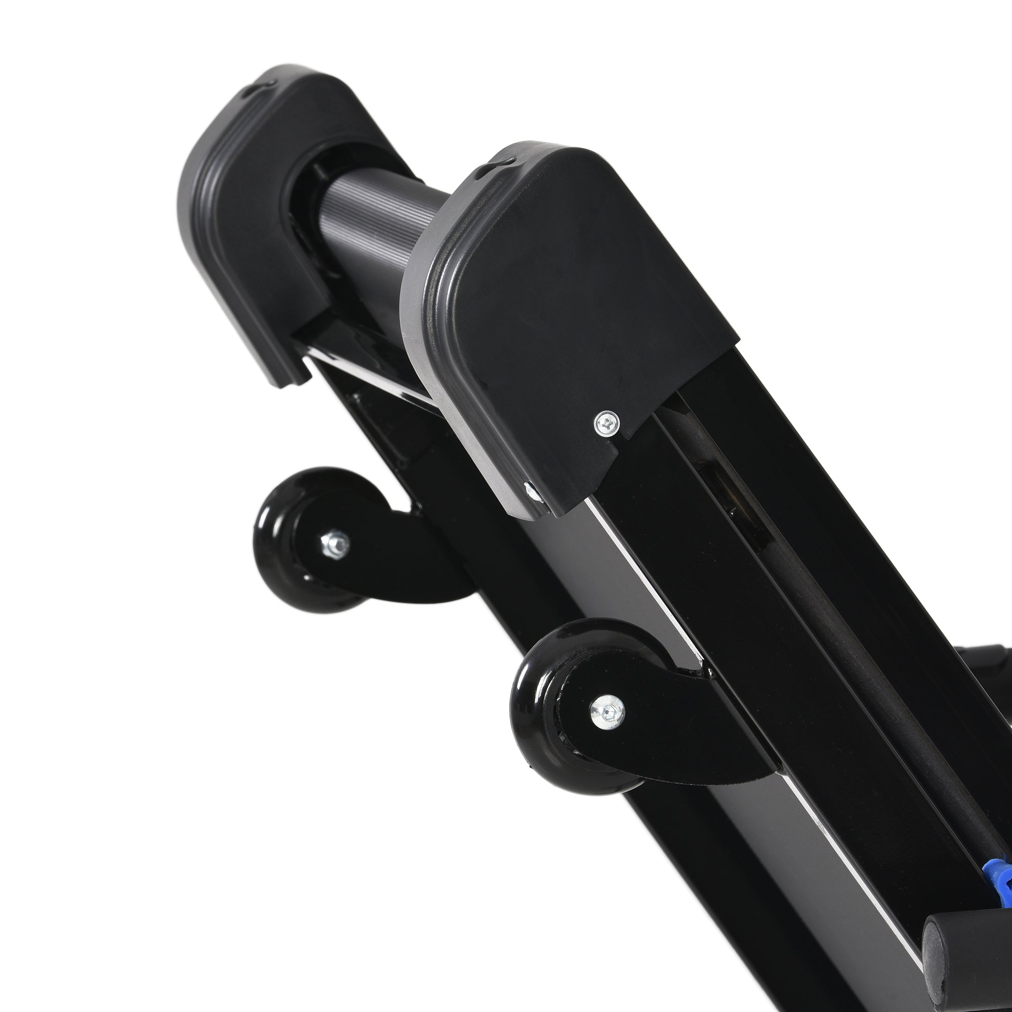 - [Folding Design to Save Spaces]Soft drop system for eassy folding. One simple kick on the rod and the running deck will automatically lay down in a slow speed without security concerns.