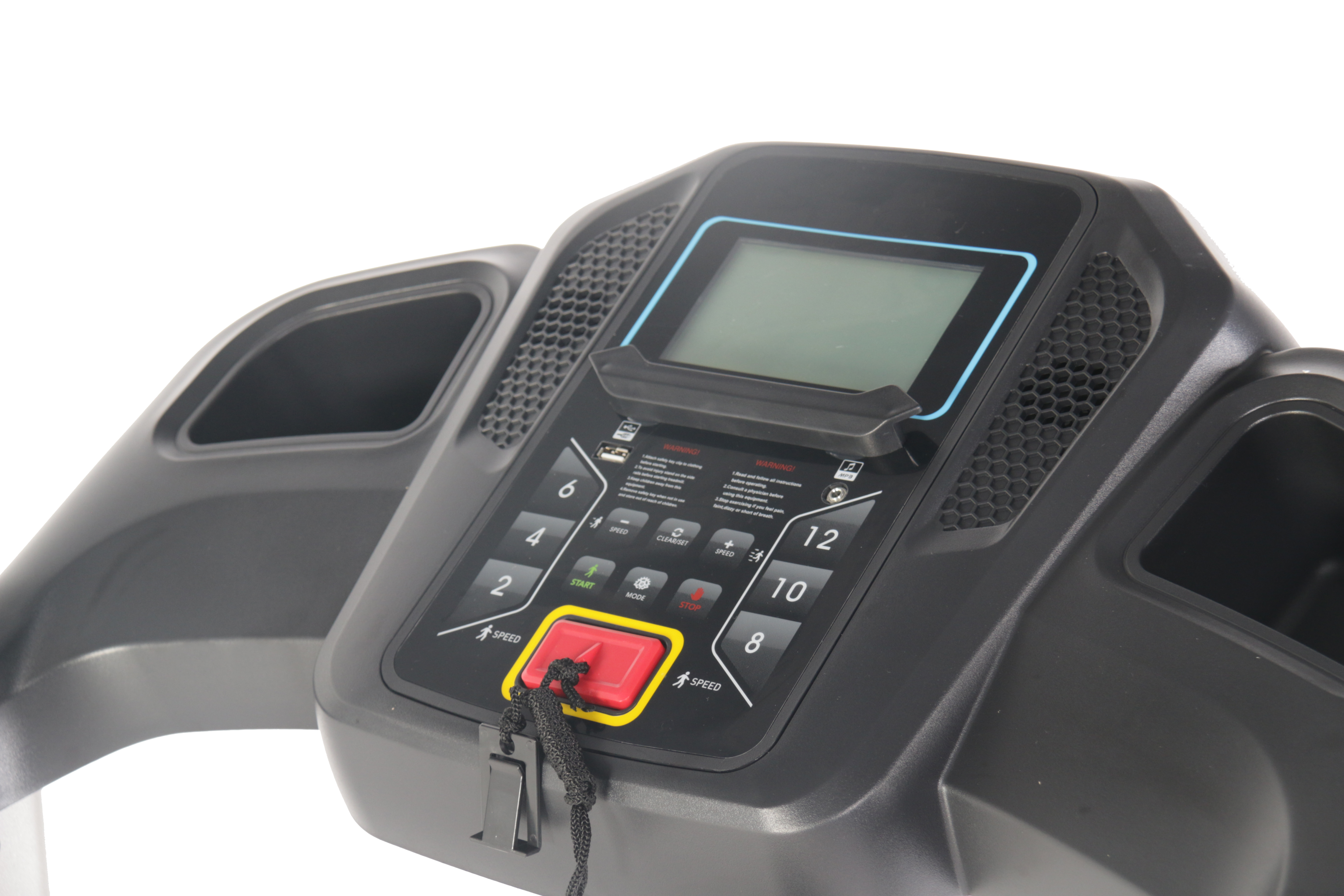 • 【Worry-Free After Sales & Fully Loaded Accessories】Bright LCD digital screen of this treadmill for home displays speed, calorie meter, running time and distance. Hand sensor for heart rate monitoring. Cup holder, phone holder and security key.