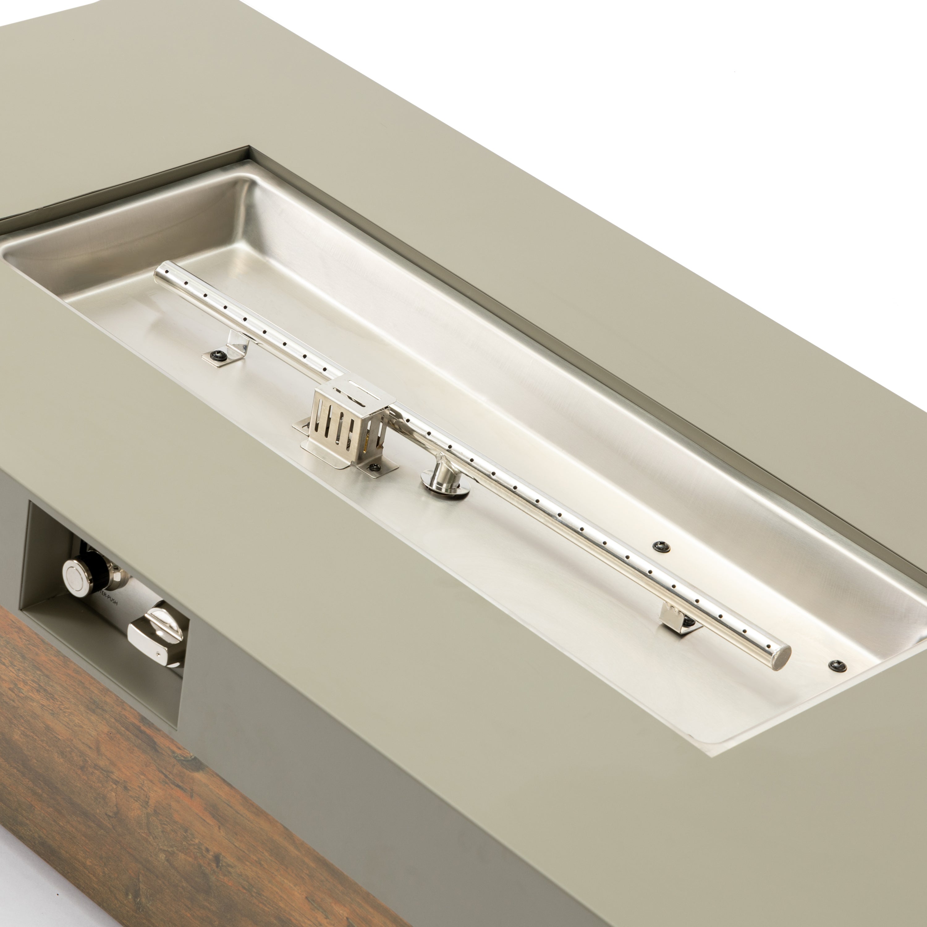 This large fire pit table is designed to provide both warmth and ambiance, allowing you and your guests to gather comfortably. The realistic wood grain finish gives you the natural beauty of wood without the worry of splinters, rot, or fire risk. Enjoy a clean-burning, hassle-free flame (powered by propane or natural gas) for a truly relaxed outdoor experience.