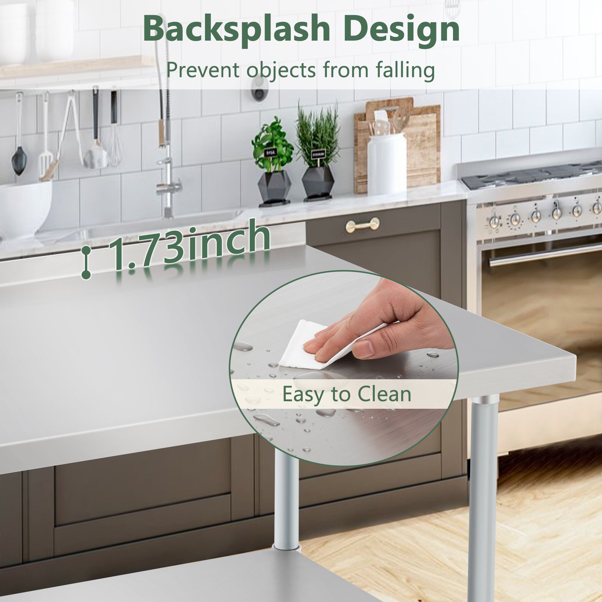 - 【Precision Welding for Enhanced Durability】Our table features precision welding technology, ensuring that all connections are secure and stable. The backsplash guard and edges are smoothly finished and undeformed, adding to the overall durability and professional appearance of the table.