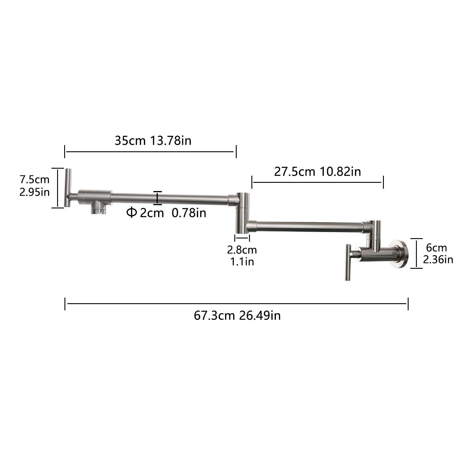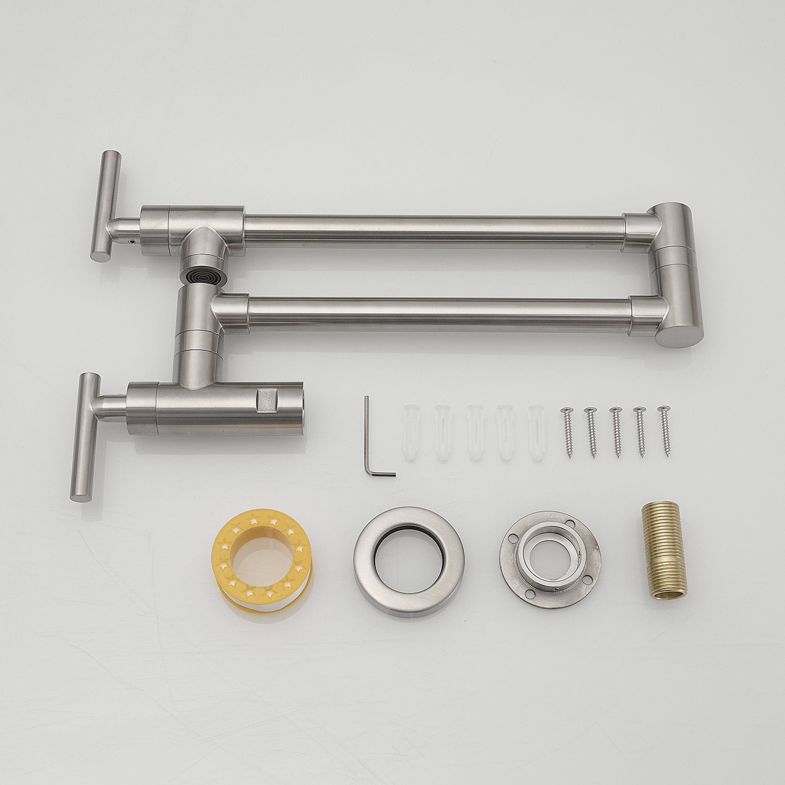 - Nickel Kitchen Pot Faucet with Double Joint Swing Arms