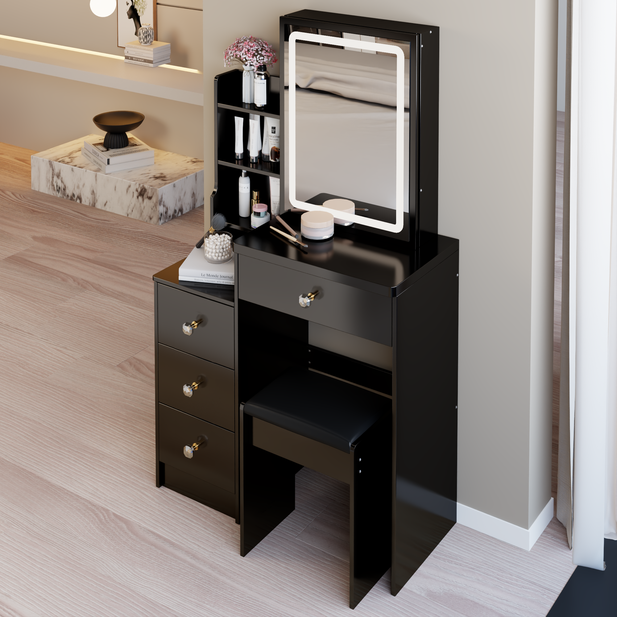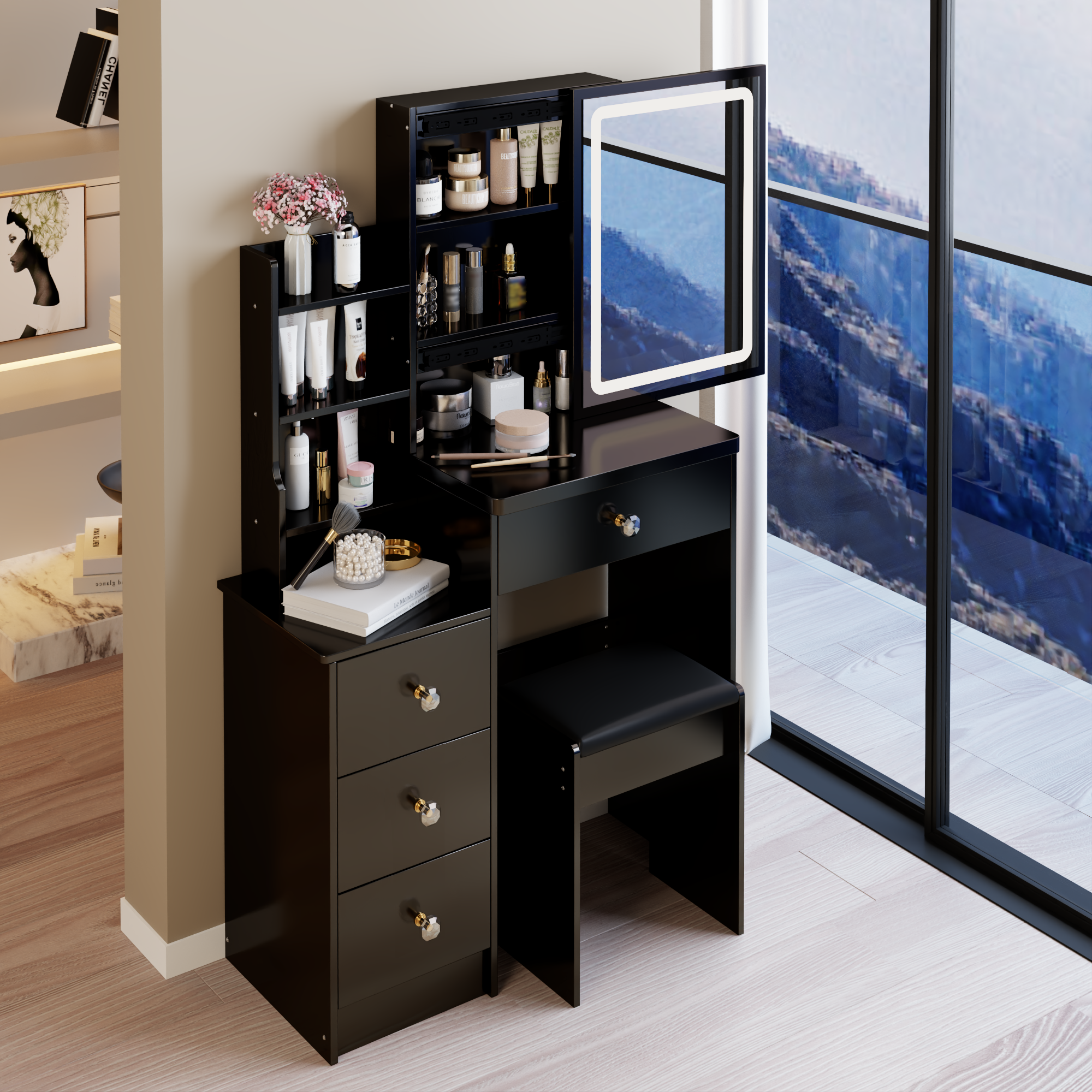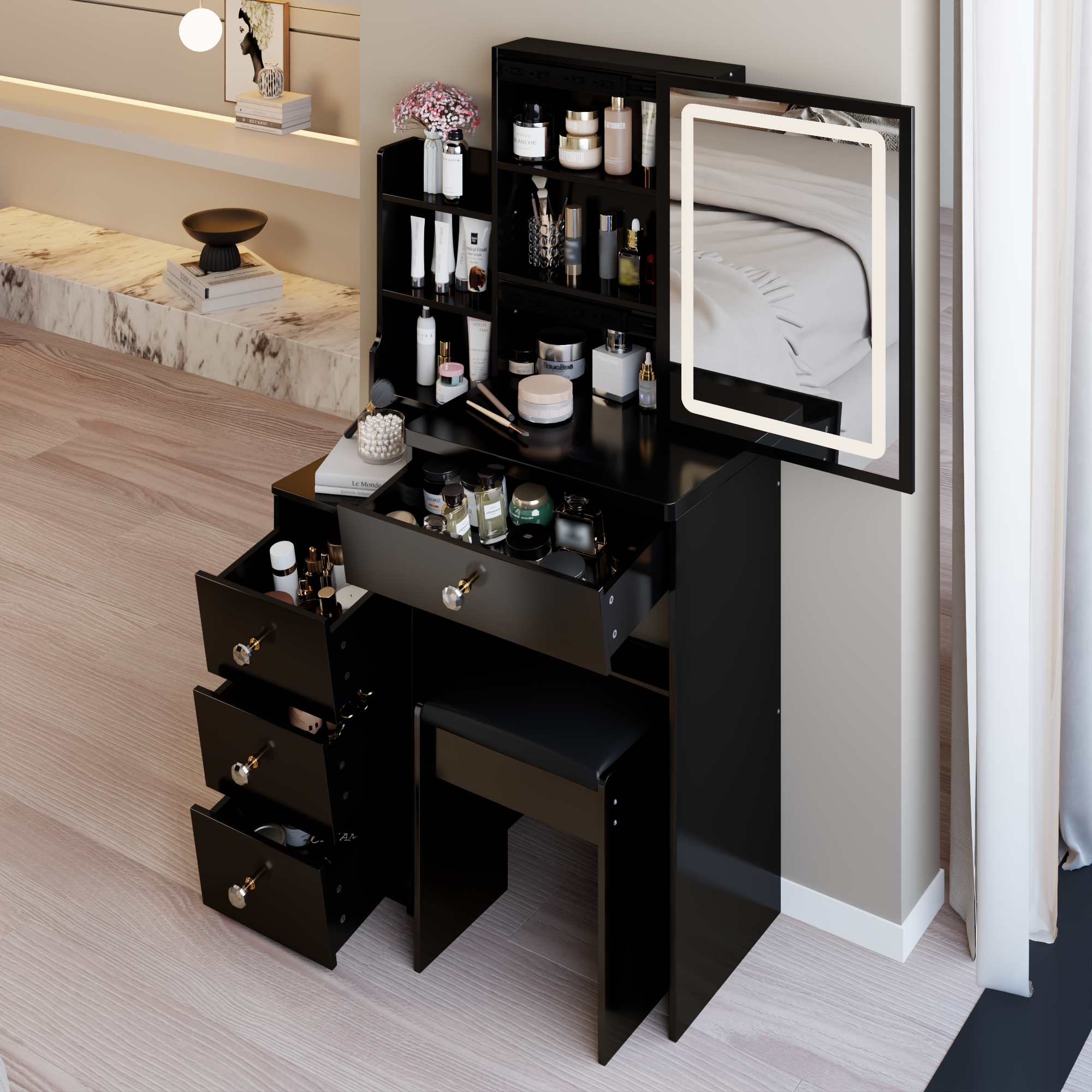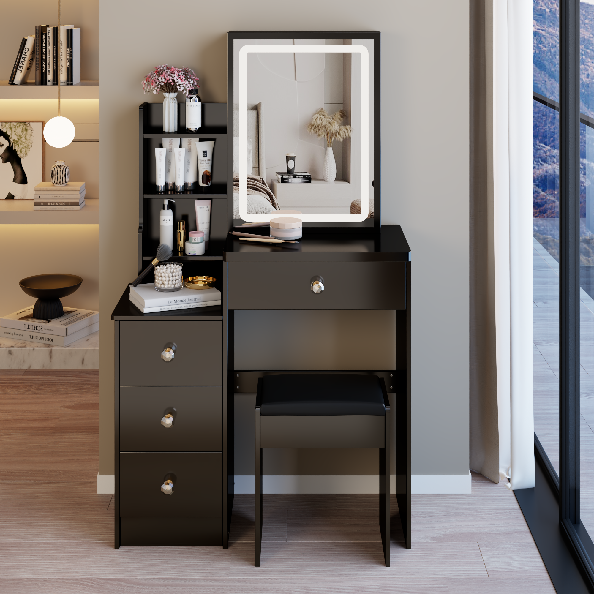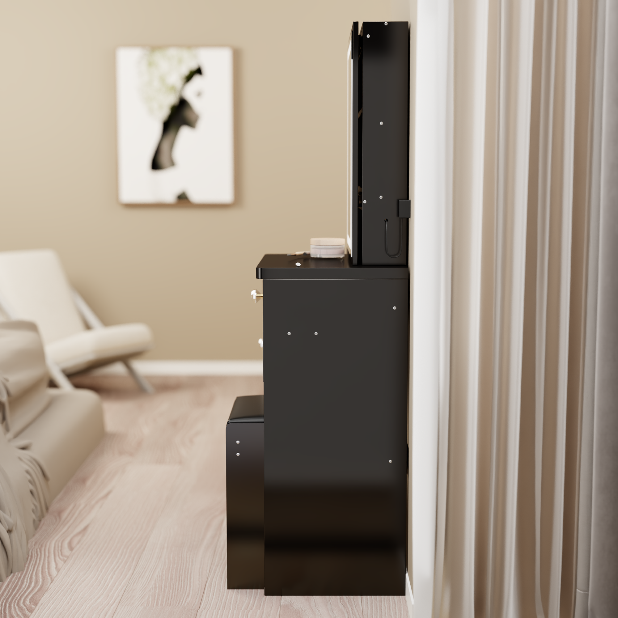 High-Capacity Storage: Hidden compartments and drawers provide ample space to store cosmetics, jewelry, and more.