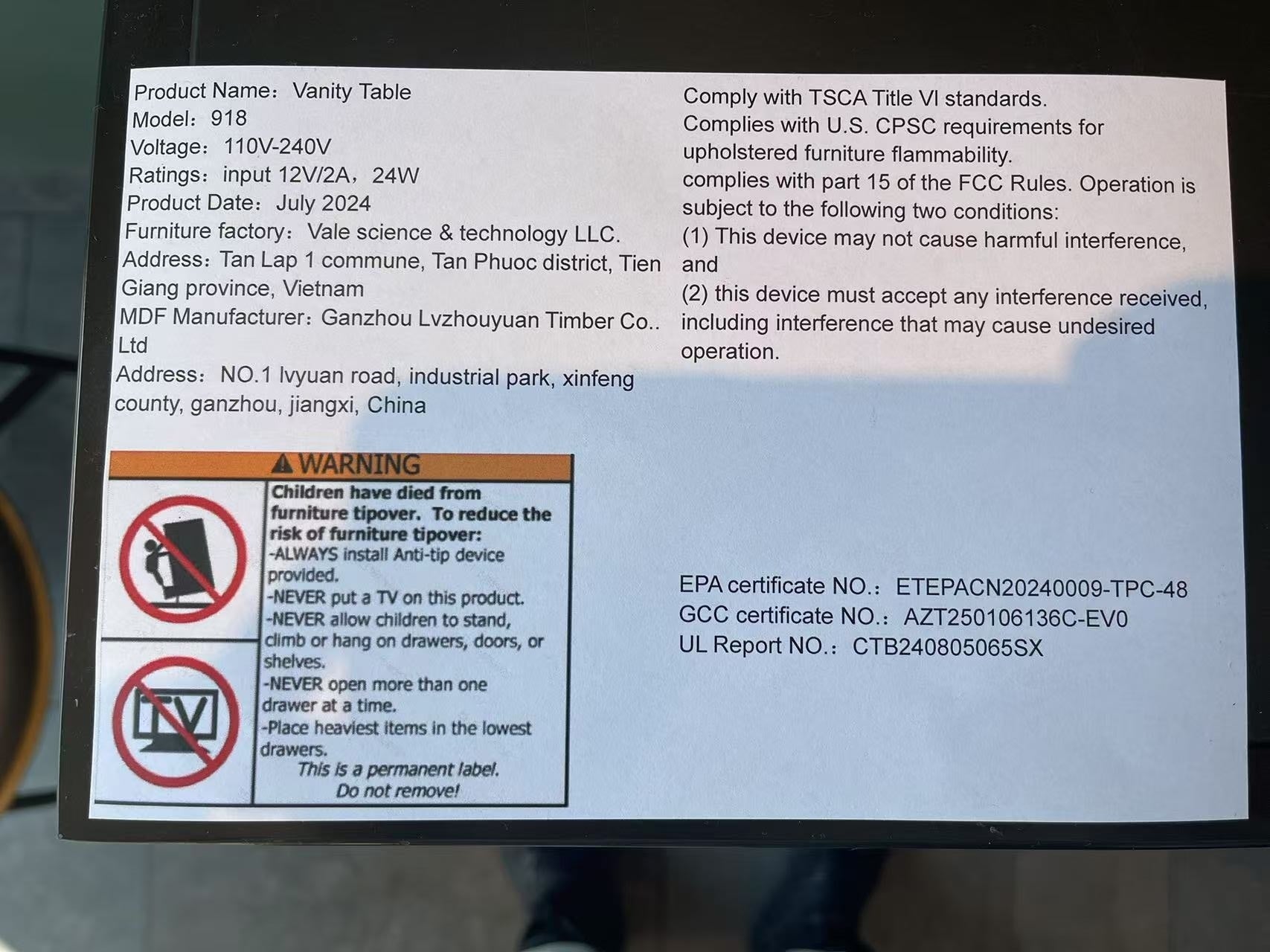 - [Precautions]: There are about 40 boards composing the dressing table. Assembly is a time-consuming task that is expected to take 2-3 hours. 2. There is no numerical lable on each board, so it may be challenging to identify each board according to the image in the installation manual. 3. There may be slight sawdust residue on the boards inside the packaging, and if there are very strict requirements for it, it may not be suitable for you.
