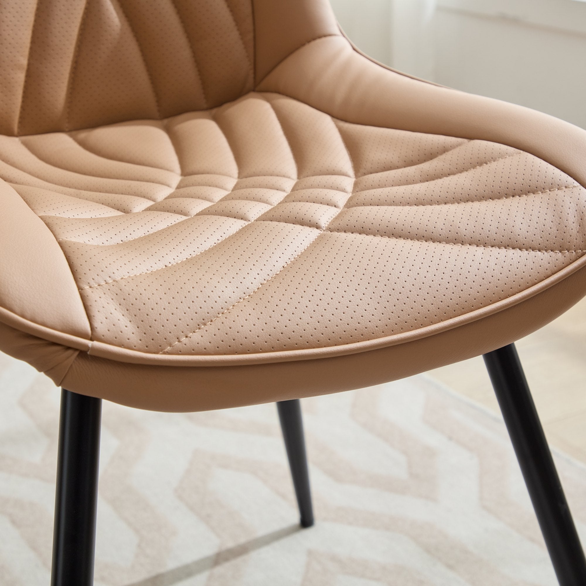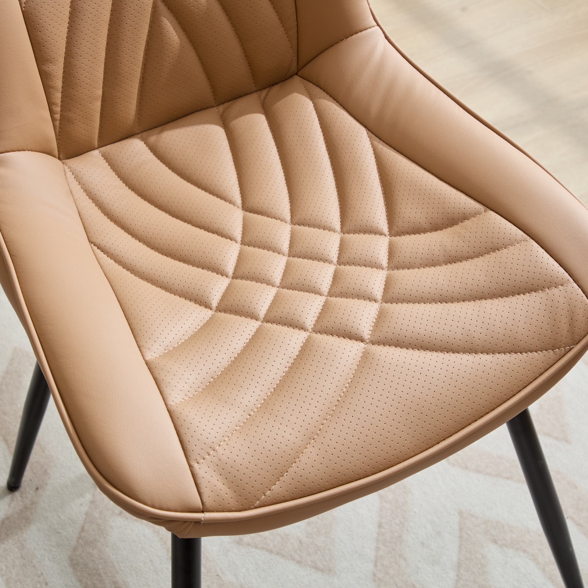 Product Description: Upgrade your dining space with this stylish set of 2 Mid Century Modern dining chairs. Designed for comfort and elegance, these kitchen chairs feature a generously padded seat and back, upholstered in durable and easy-to-clean faux leather. The chic khaki color adds a touch of sophistication to any decor. With their comfortable, ergonomic design, these dinner chairs are perfect for long meals and entertaining in your kitchen dining room.