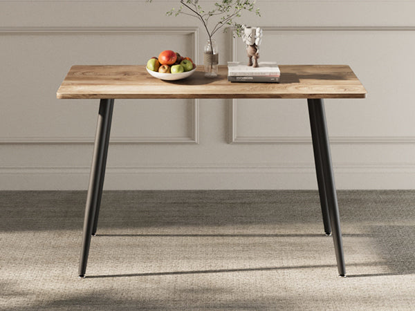 47" Modern minimalist MDF wood color dining table, black metal legs, small sized dining table, computer desk, office desk, kitchen table, for4- 6 Seat.Suitable for home & kitchen