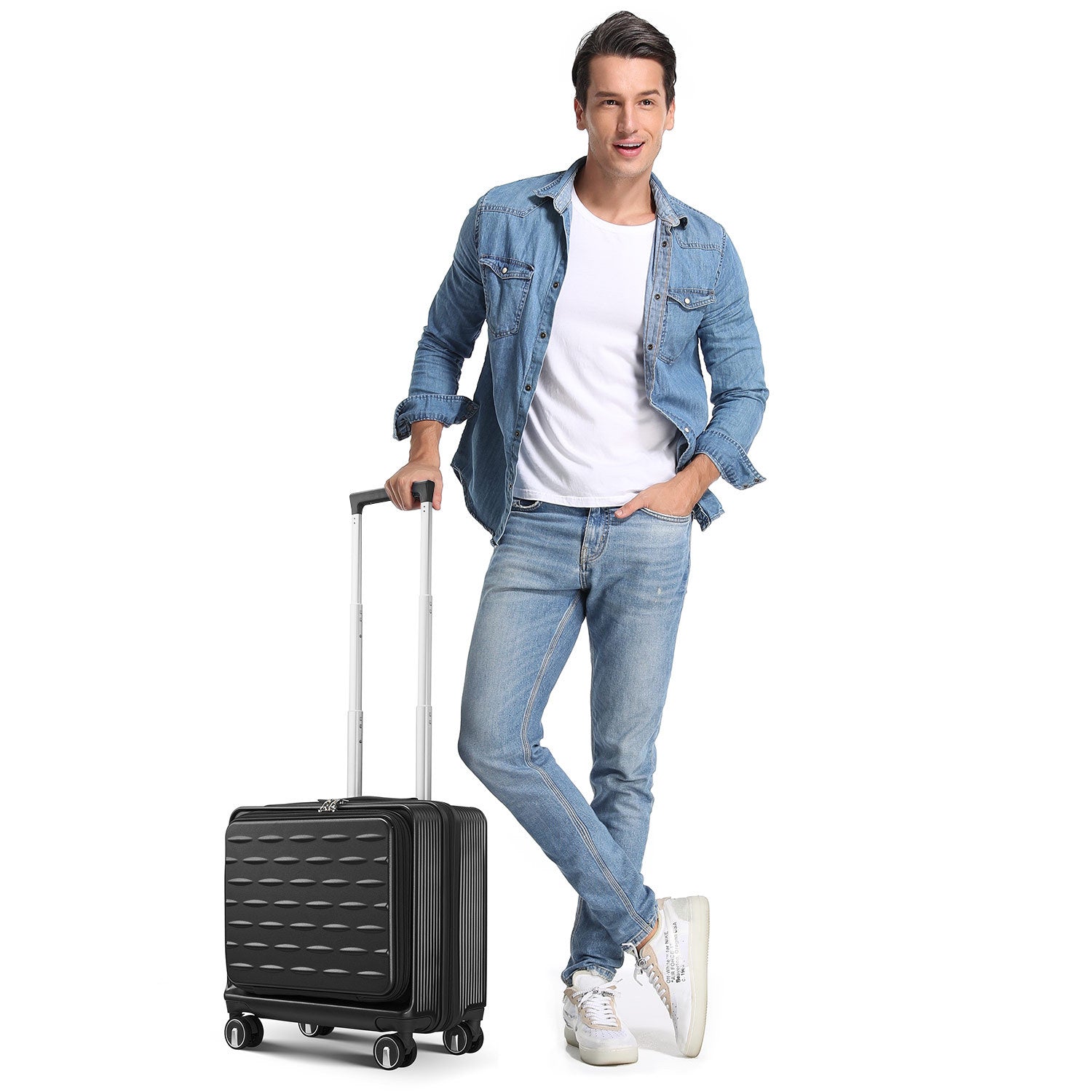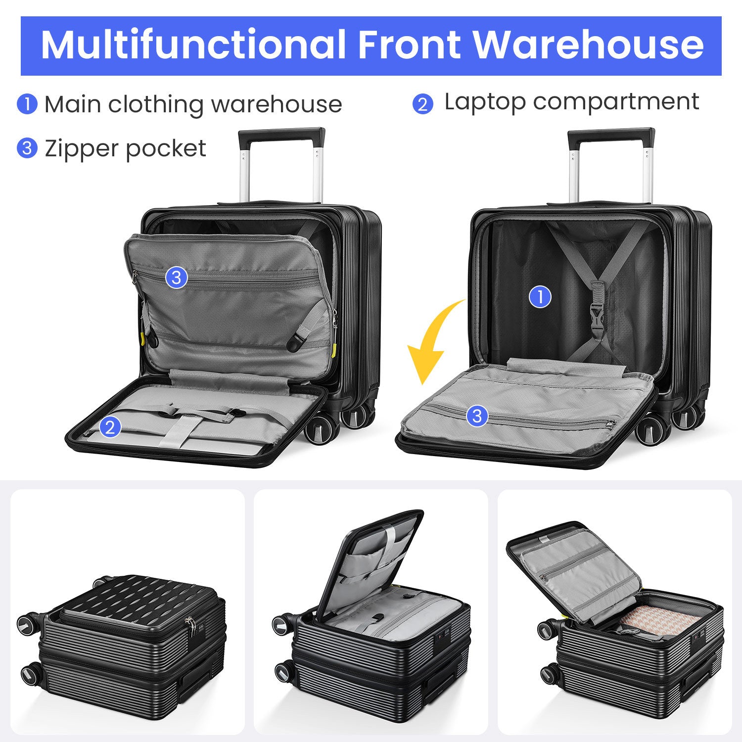 18" Carry-On Luggage with Front Open Door and Laptop Interlayer, PC Hard Shell Suitcase, Built-In TSA Lock, Lightweight Hardside Spinner Wheels, Airline Approved for Men and Women