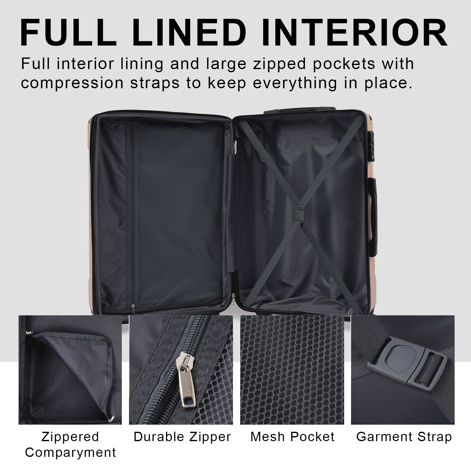 - ABS Hard Shell: The material has excellent wear resistance and impact resistance, and is lightweight. Durable luggage can withstand transportation and keep your belongings safe. Lightweight luggage makes traveling effortless and enjoyable.