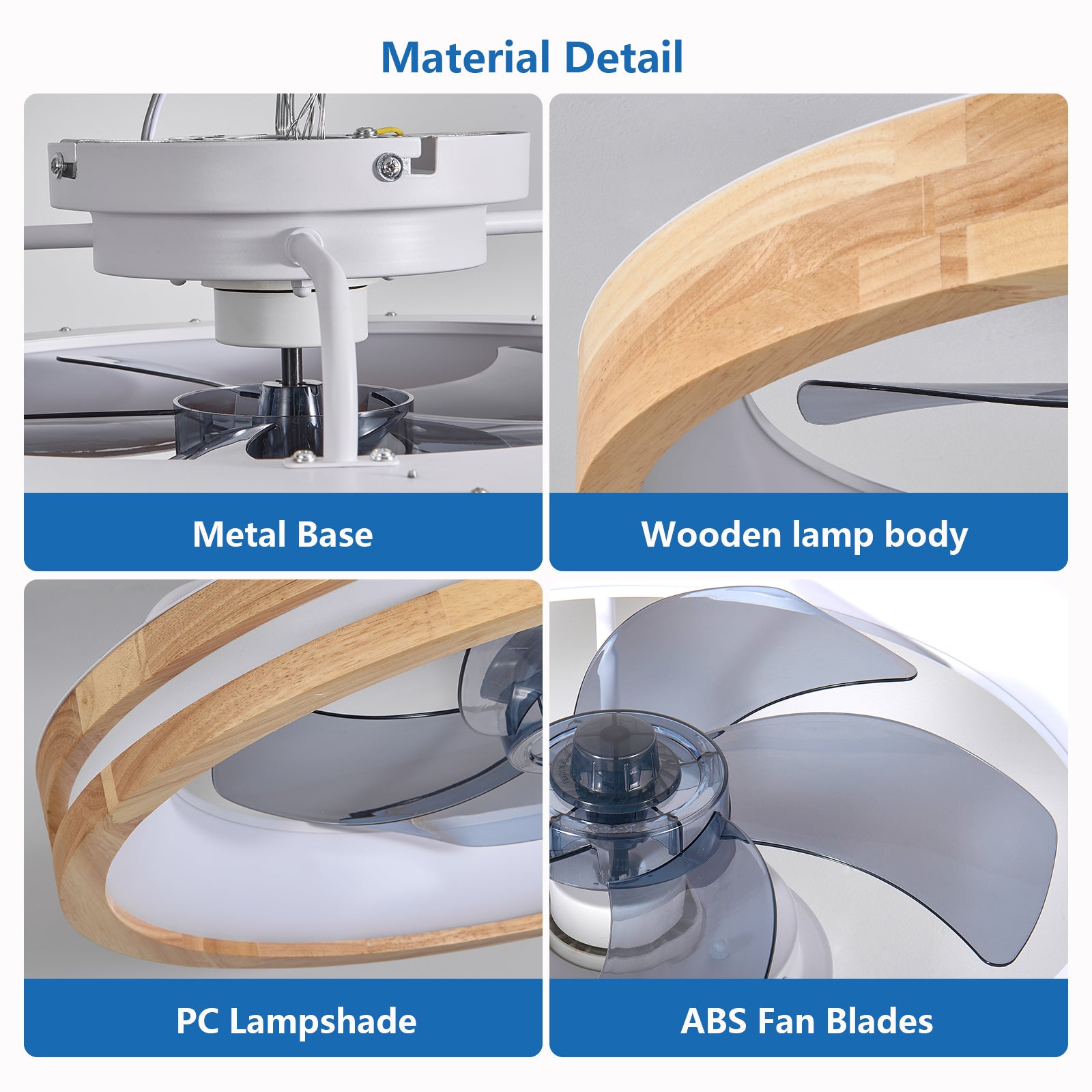 Modern Low Profile Ceiling Fans with Lights and Remote, 20' Wooden Flush Mount Reversible Bladeless