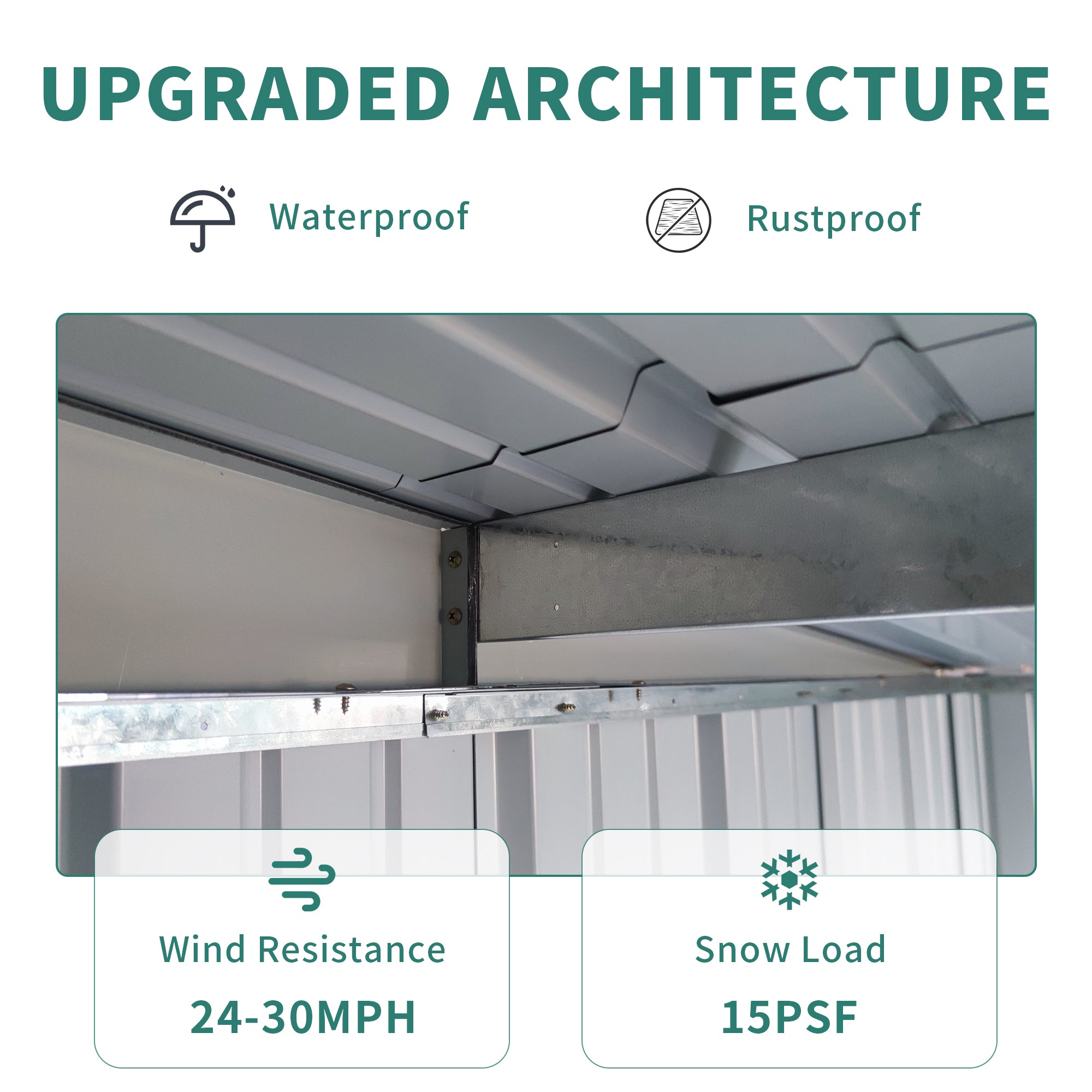 - 【Heavy-Duty Galvanized Steel Build】Engineered with a rust-resistant steel frame and UV-protected galvanized panels, this shed endures rain, snow, and sun while resisting corrosion. Built to last for years in any climate.