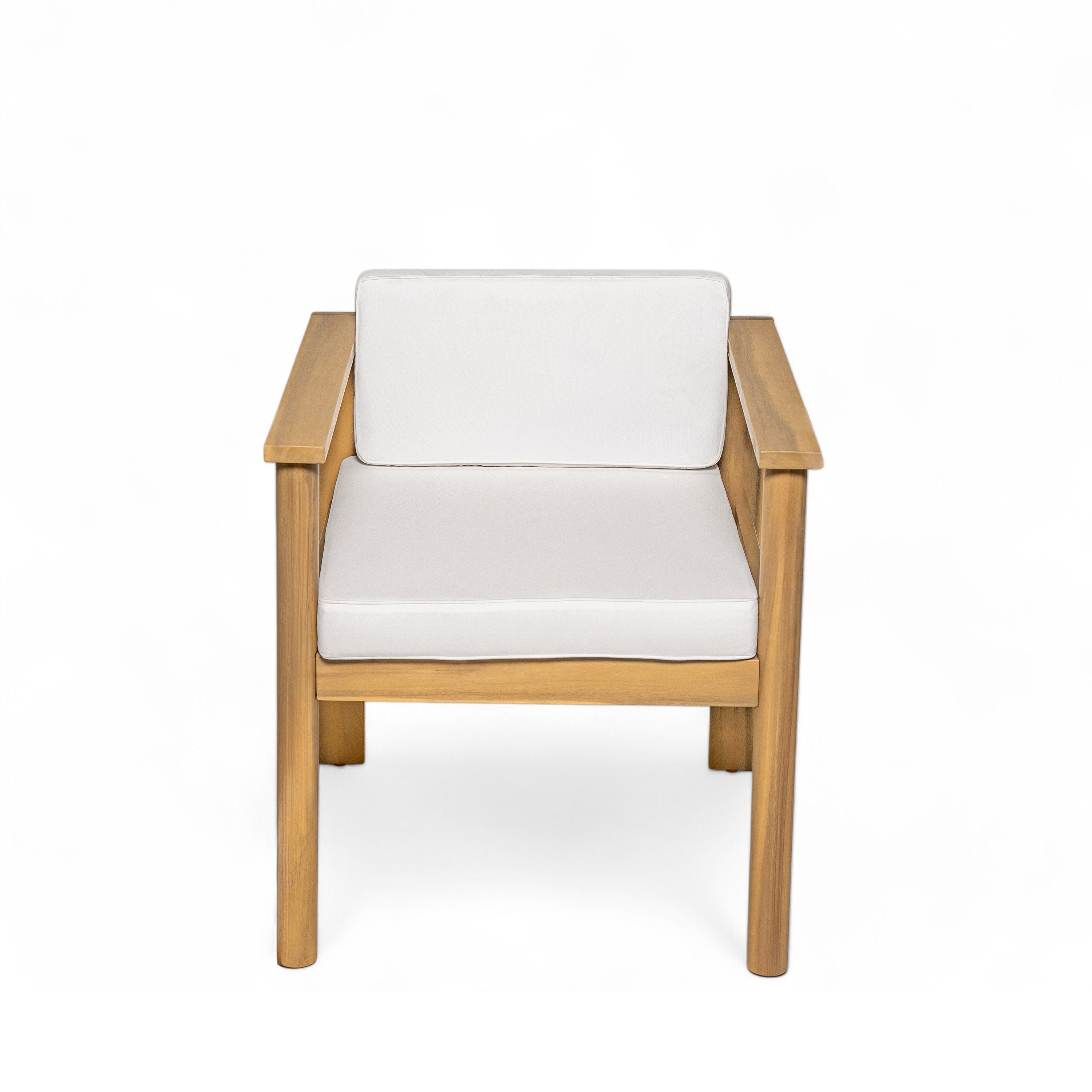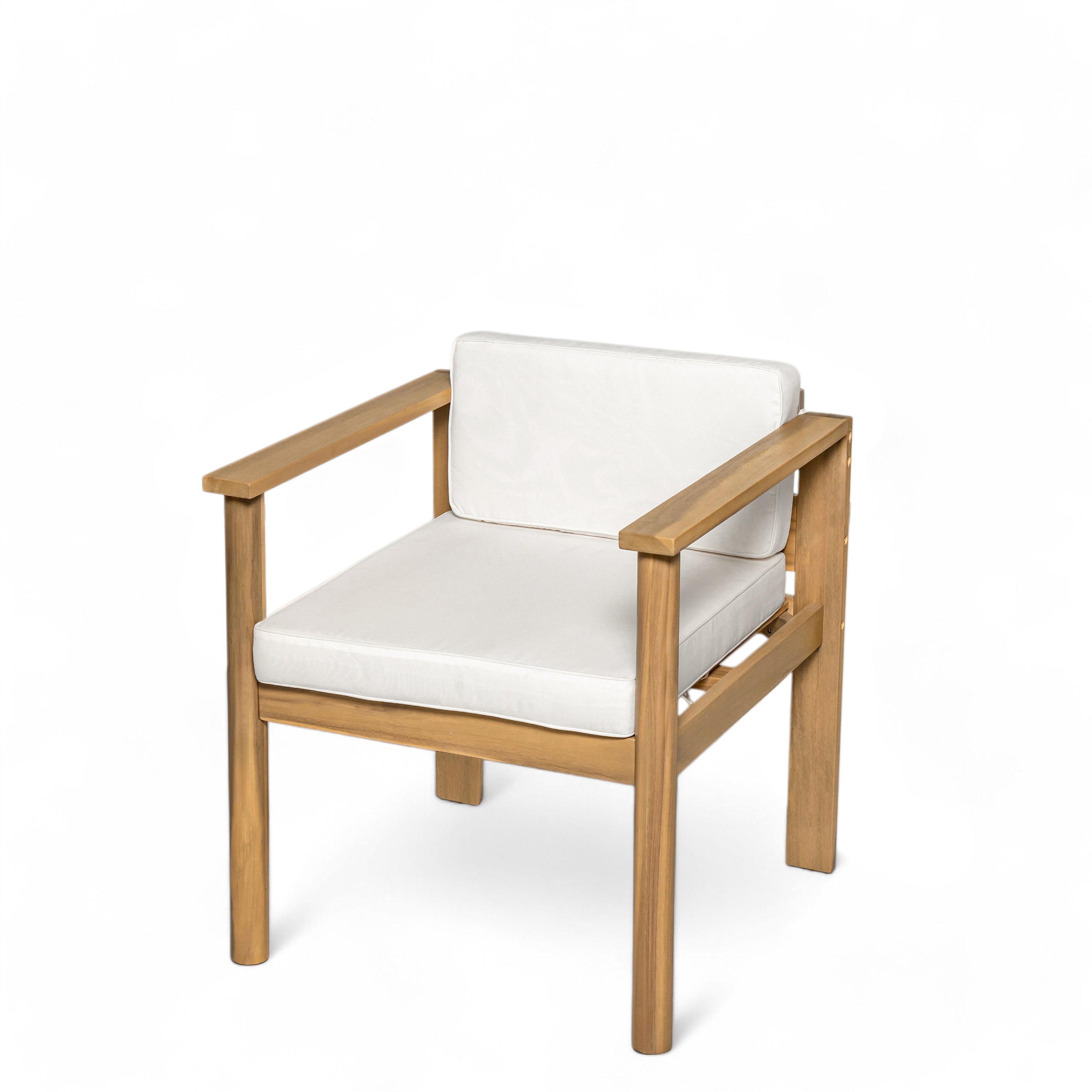 - Rustic Charm, Modern Convenience:The natural wood frame is complemented by soft, removable beige cushions are resistant to fading and weather conditions, perfect for outdoor, patio or garden. The sturdy, weather-resistant solid wood frame provide lasting durability, while the soft beige cushions offer maximum comfort for long alfresco. Whether you're hosting a dinner party or enjoying a casual lunch, this patio furniture set enhances any outdoor space with its elegant design. 2 colors available.