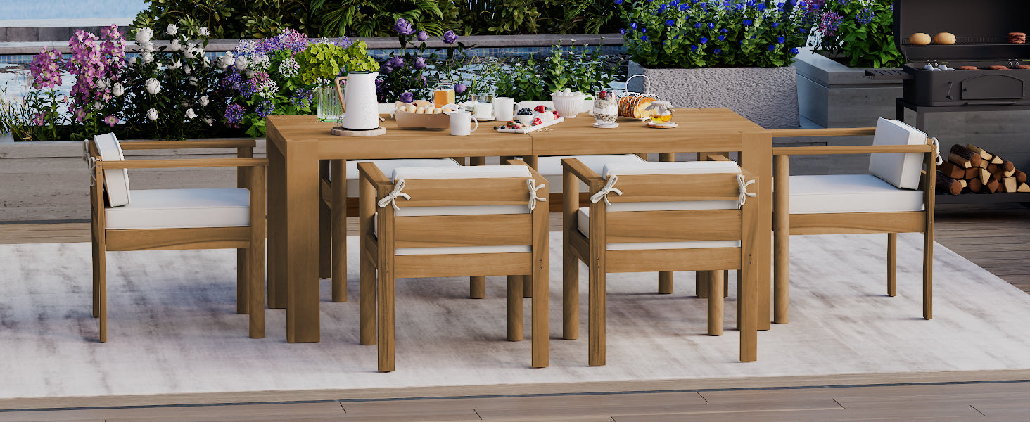 TREXM 7-Piece Patio Dining Table Set for 6,Outdoor Furniture Sets with 72.8'Rectangle Table,Patio Table and Chairs Set with Removable Cushions for Backyard,Garden,Poolside(Light Teak+Beige Cushion)