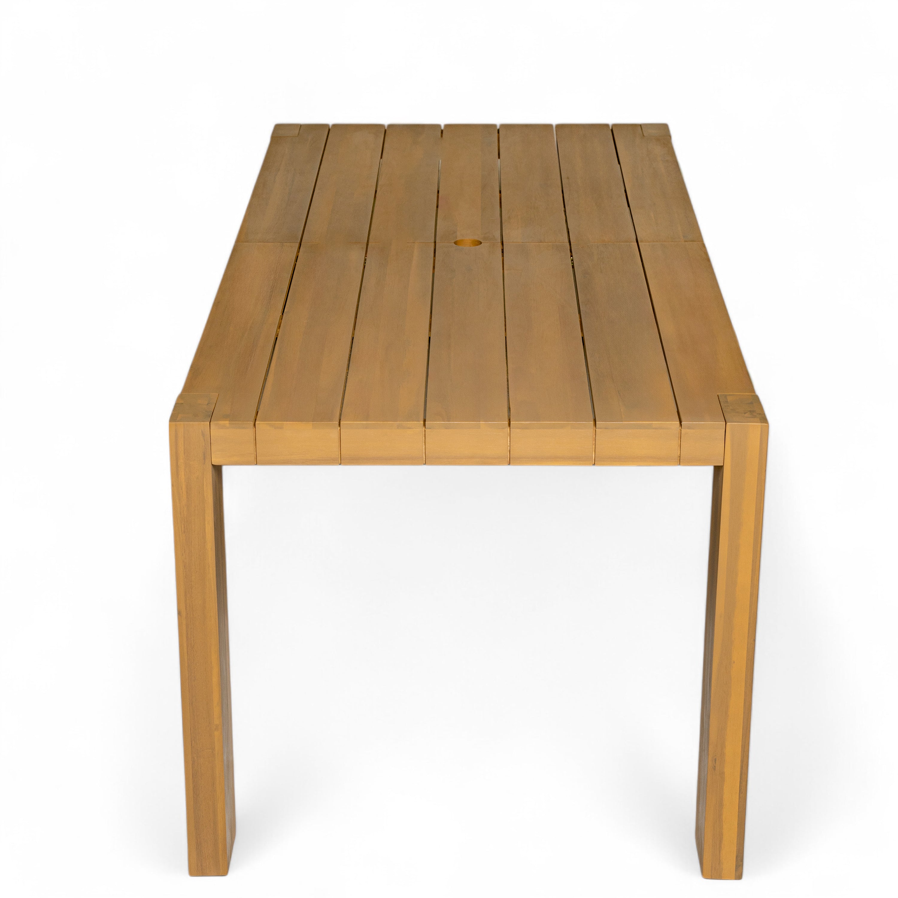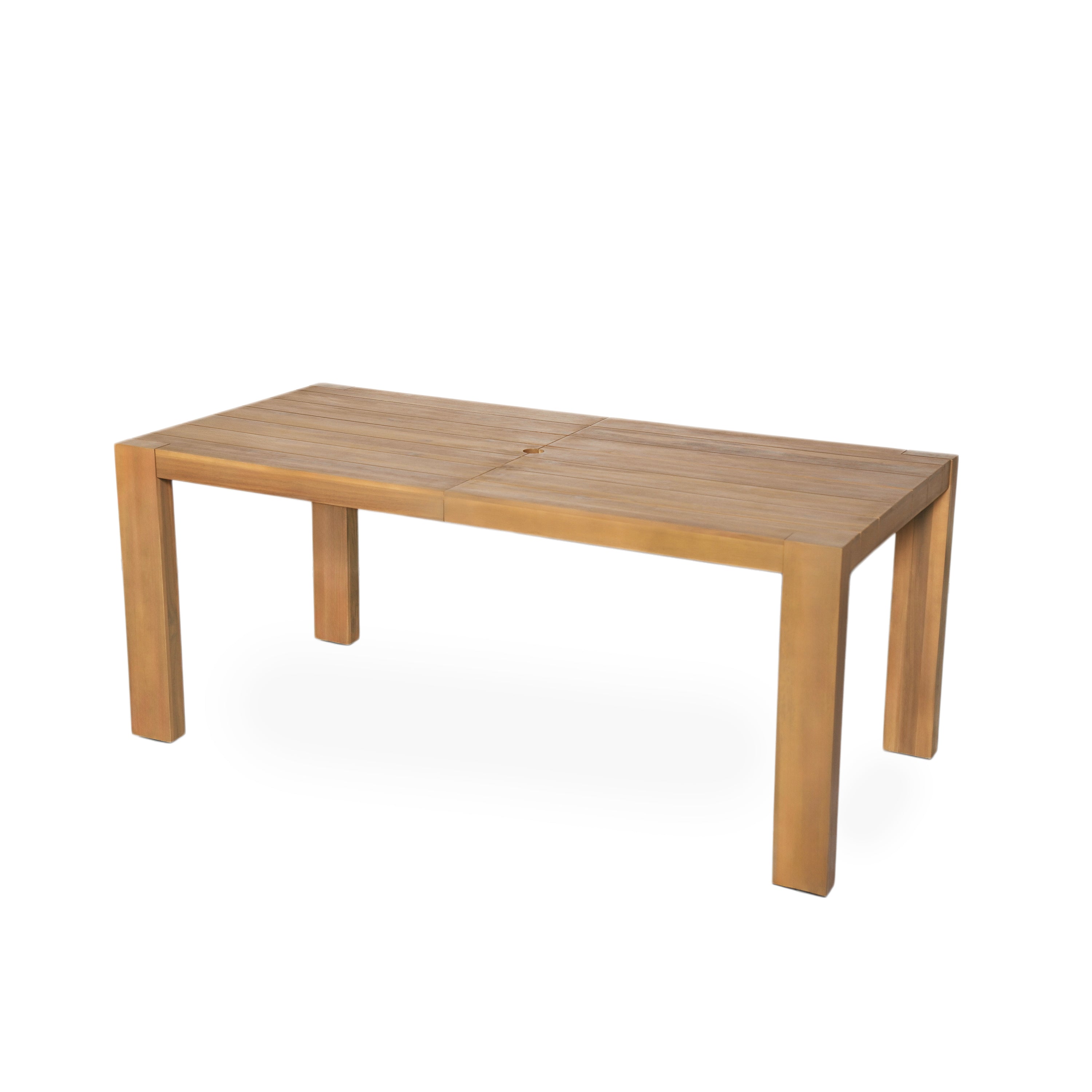 - Practical Patio Dining Table: Adjustable leveling feet stabilize on uneven grass/decks, slatted drainage-friendly tabletop protects against sun, rain and splashes. Pre-drilled umbrella hole keeps guests shaded during daytime gatherings, and are not bothered by light rain. The patio dining table is built for backyard BBQs and poolside parties.