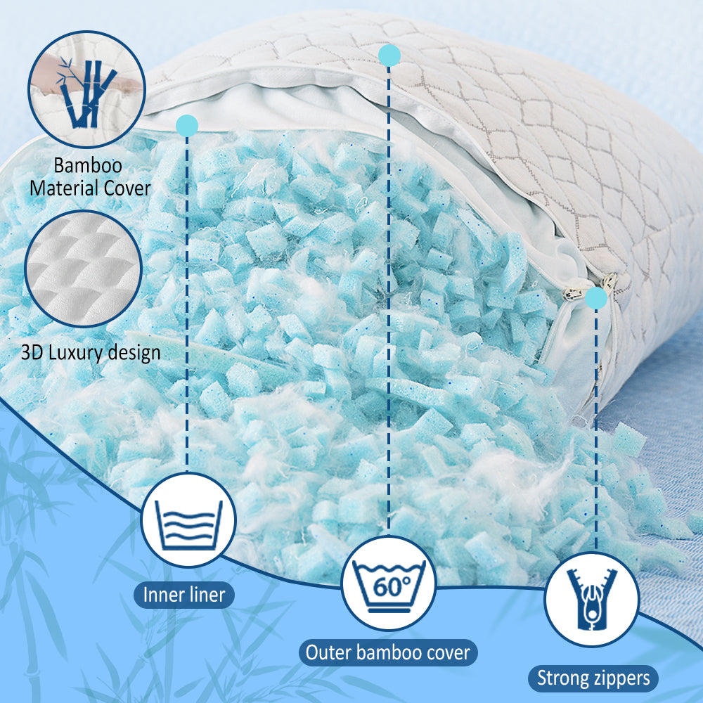 - Adjustable Loft and Firmness - Too hard, too firm, too soft, no support? Unlike traditional down pillows, the shredded memory foam pillows feature a zippered inner and outer cover, you can ADD or REMOVE foam filling to suit your size, shape, or sleep position, find the perfect comfort level, and provide the ultimate sleeping experience. Perfect for side sleepers, back sleepers, stomach sleepers, and college essentials.