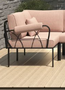 - This pink fabric patio toss pillow is the perfect accent for your outdoor modular sectional, adding a vibrant pop of color to your space.