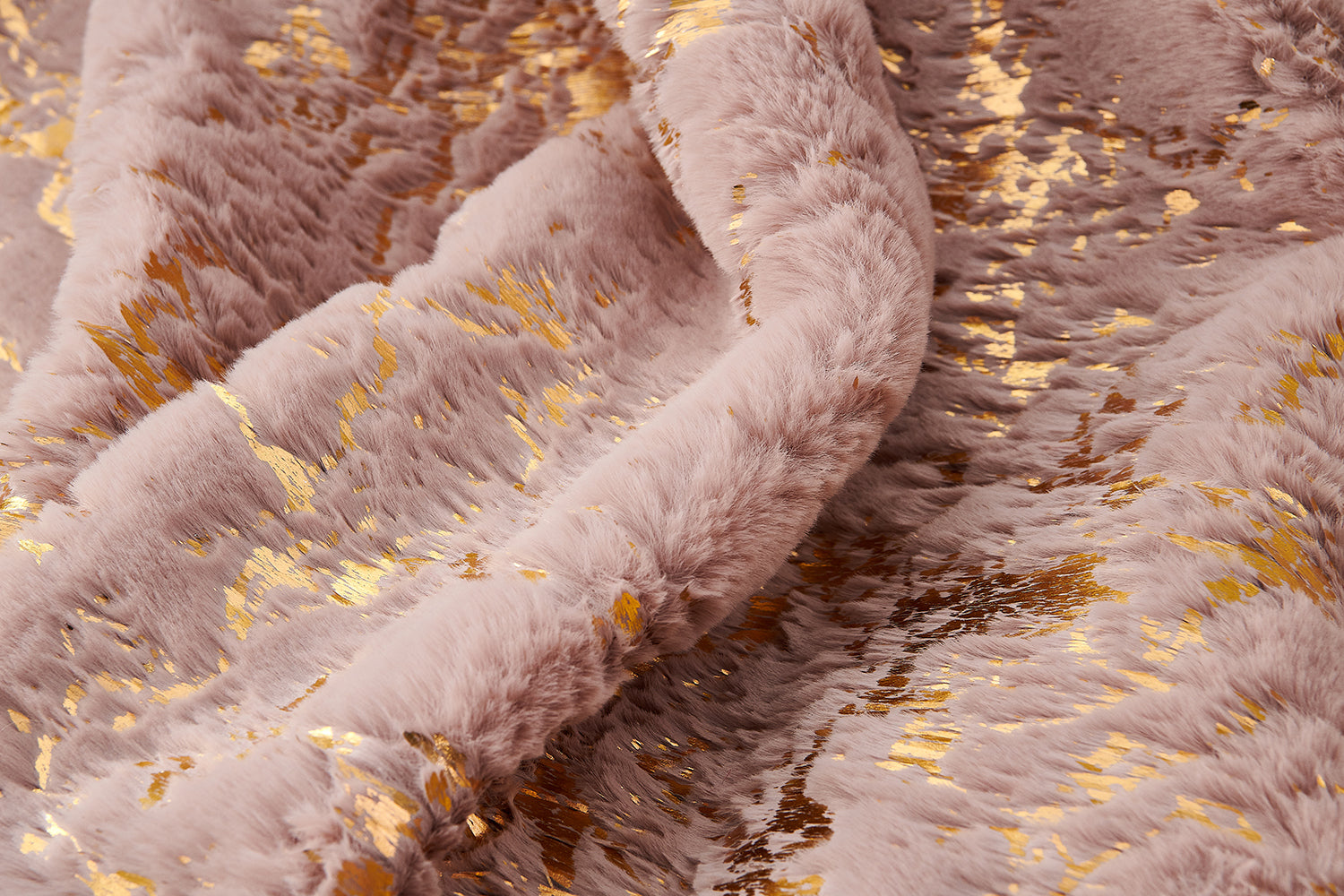 - Introduce a touch of luxury and style to your home with our Chinchilla-inspired Faux Fur Dust Pink and Gold decorative pillow throw! This soft and fluffy pillow is crafted with the finest polyester and features a velvet backing that feels like a cloud against your skin. And wait till you see the beautiful golden accent patterns that adorn this pillow, bringing a touch of opulence to any room. Whether you place it on your sofa or the bed, this pillow is the perfect way to elevate your décor.