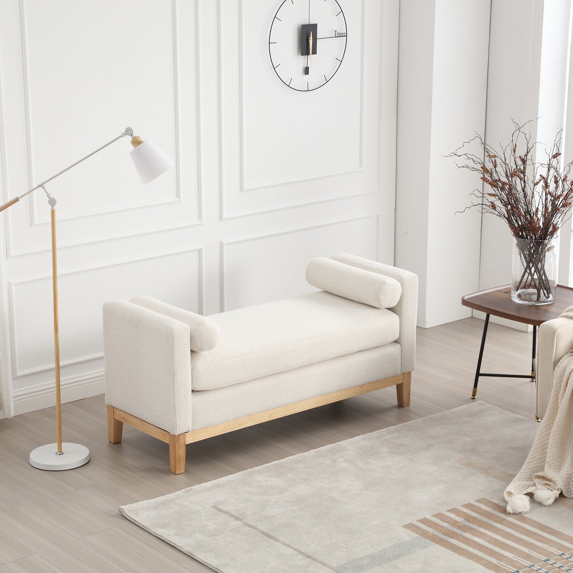 53.5"W Elegant Upholstered Bench, Ottoman with Wood Legs & Bolster Pillows for End of Bed, Bedroom, Living Room, Entryway, Ivory