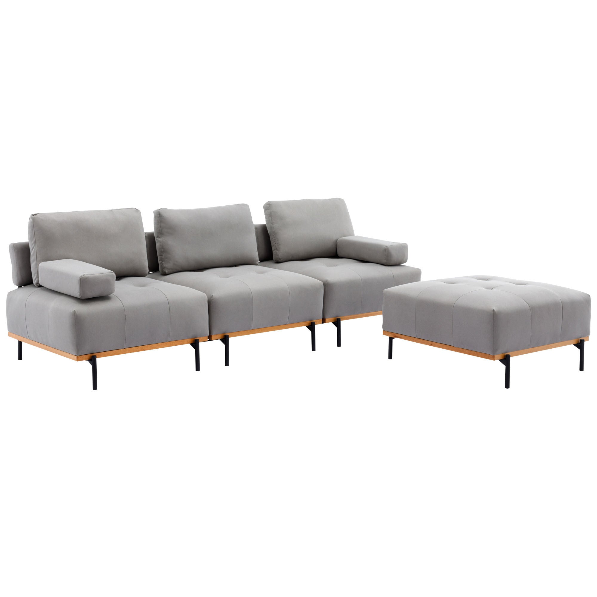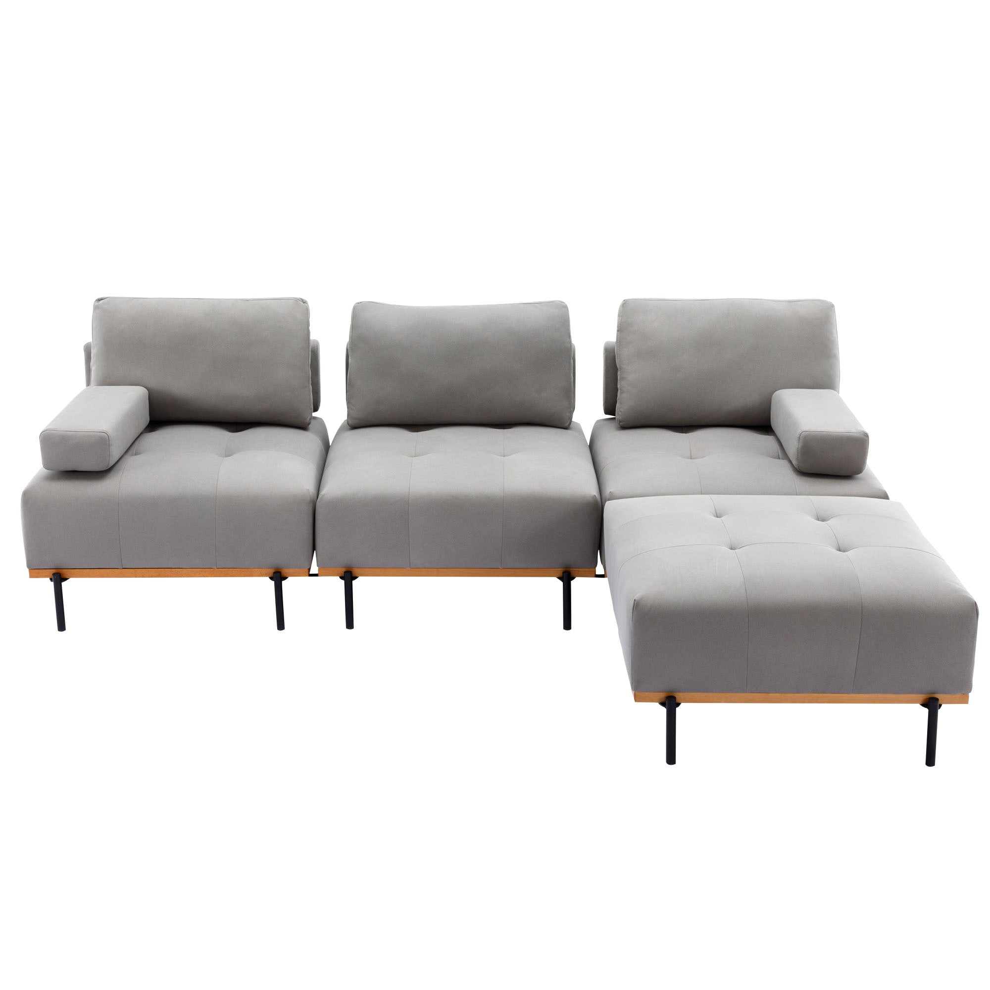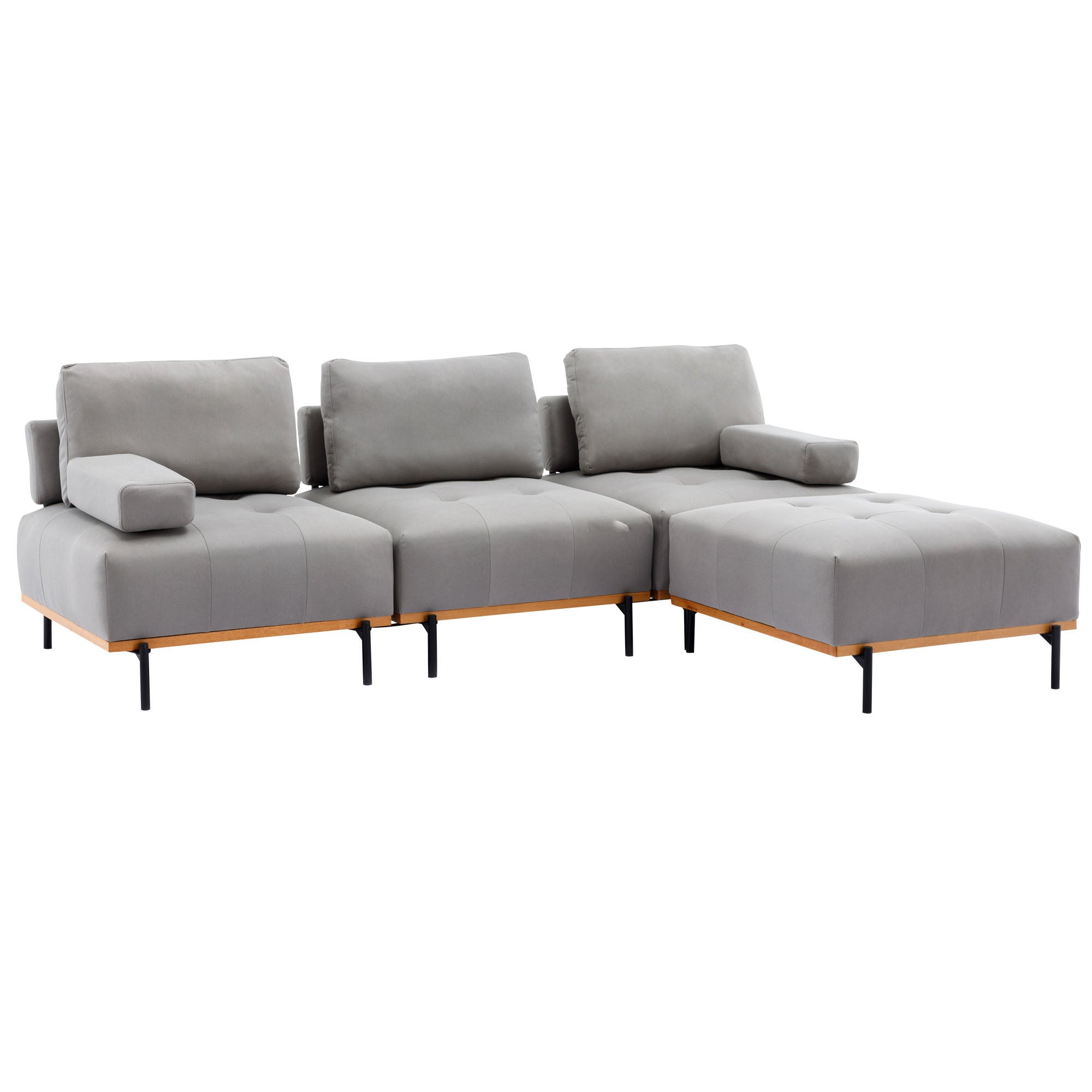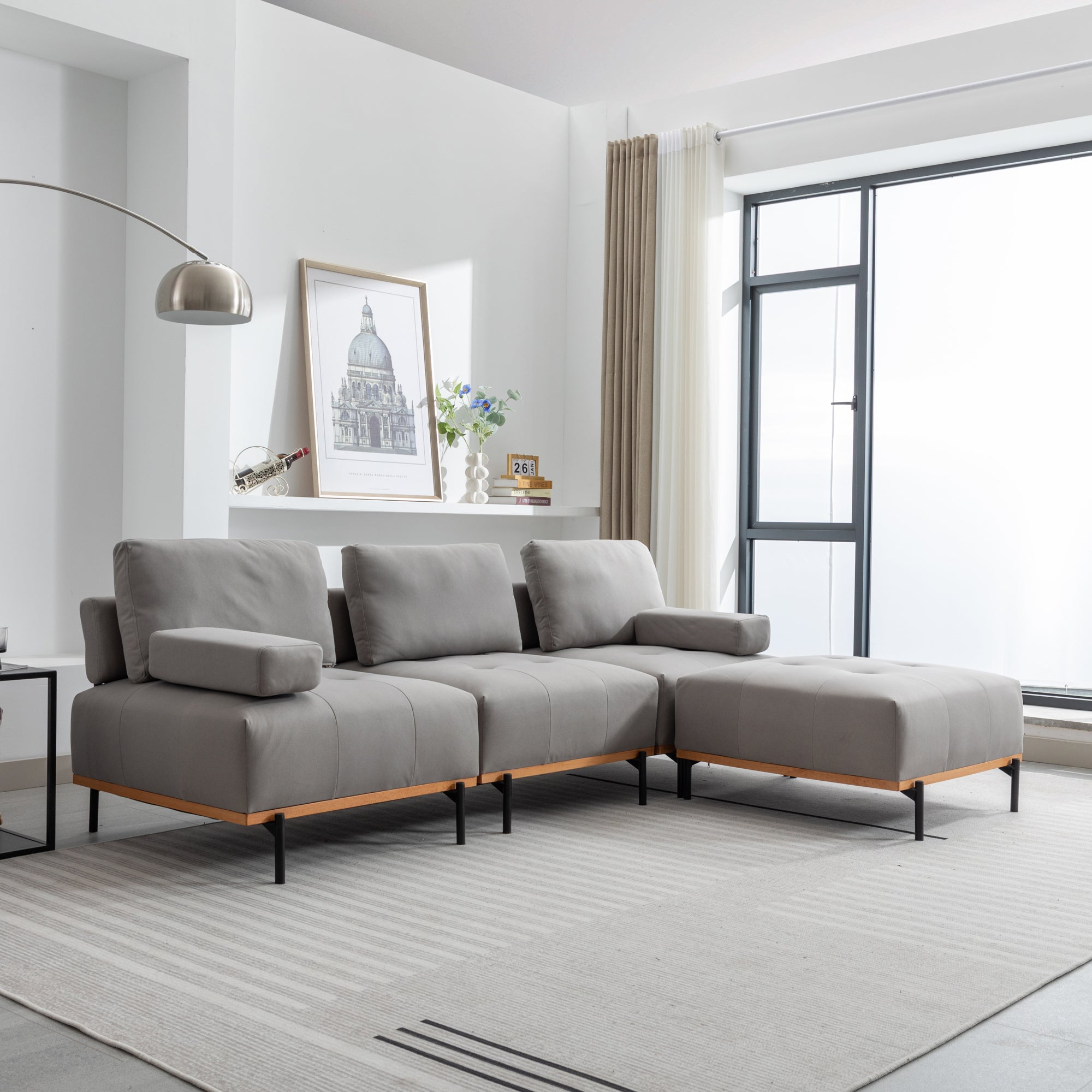 100.7'' L-Shape Sectional Sofa 3-Seater Couches with a Removable Ottoman, Comfortable Fabric for Living Room, Apartment, Grey