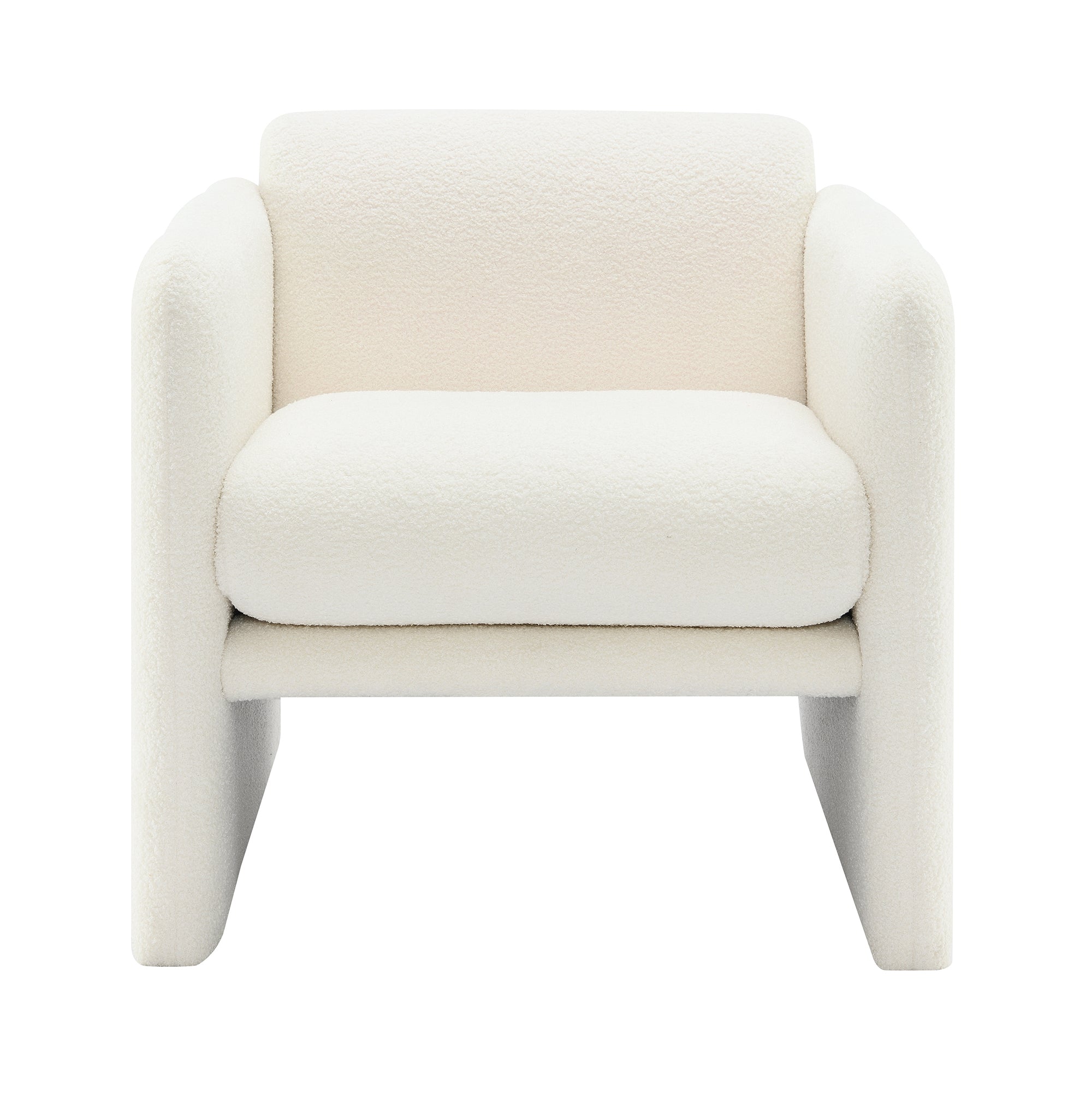 Arm Chair with waved arms, Metal decoration on both side arms, Accent chair for Primary Living Space, Living room, Bedroom,Teddy Fabric, White
