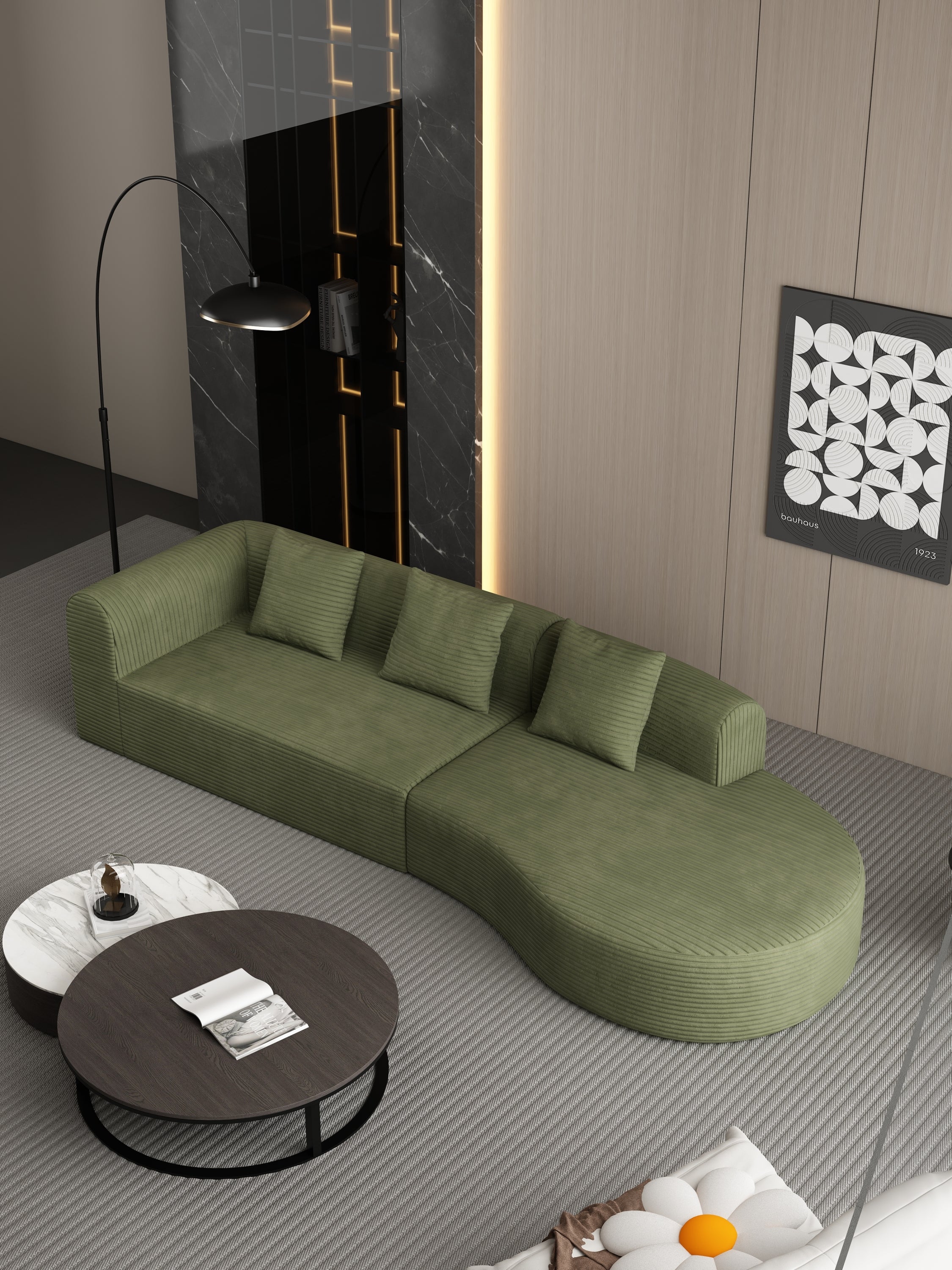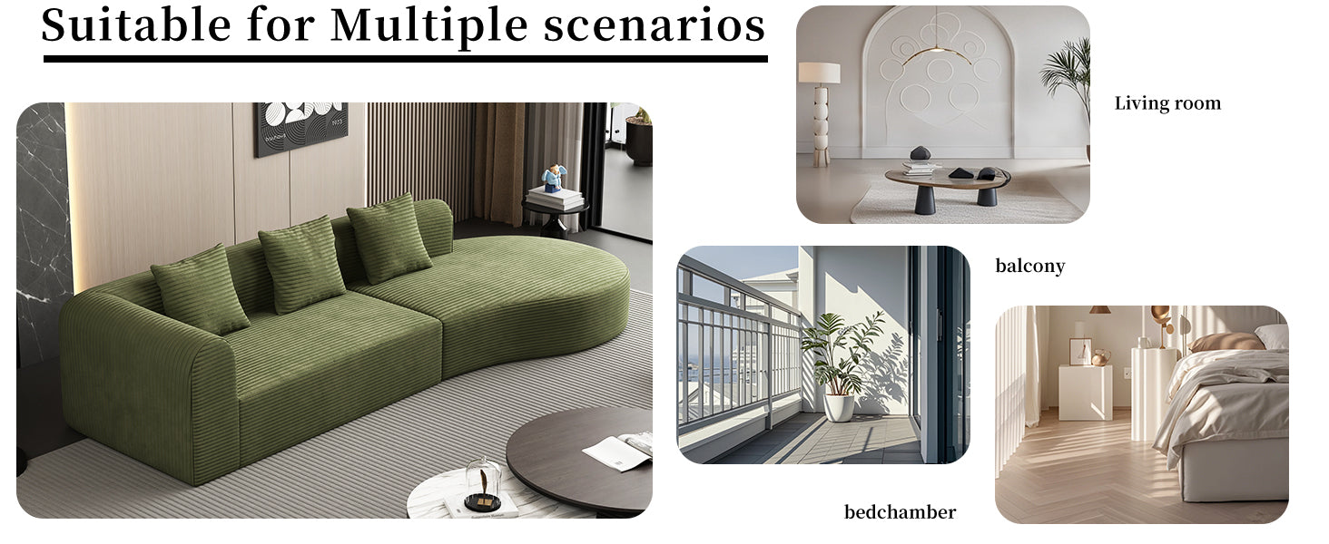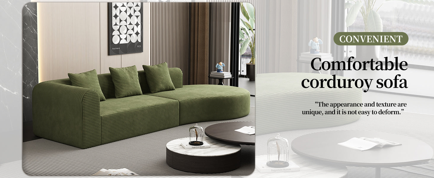 • MINIMALIST, MODULAR DESIGN - The sleek, minimalist design blends seamlessly into any decor, while modular components allow you to easily rearrange the sofa to fit your space. Whether in a living room, apartment, or guest room, the sofa can be easily moved and reconfigured to suit your needs,LUXURY, WRINKLE-RESISTANT CORDROY - This sectional sofa is wrapped in premium, wrinkle-resistant corduroy, combining soft, luxurious comfort with durability.