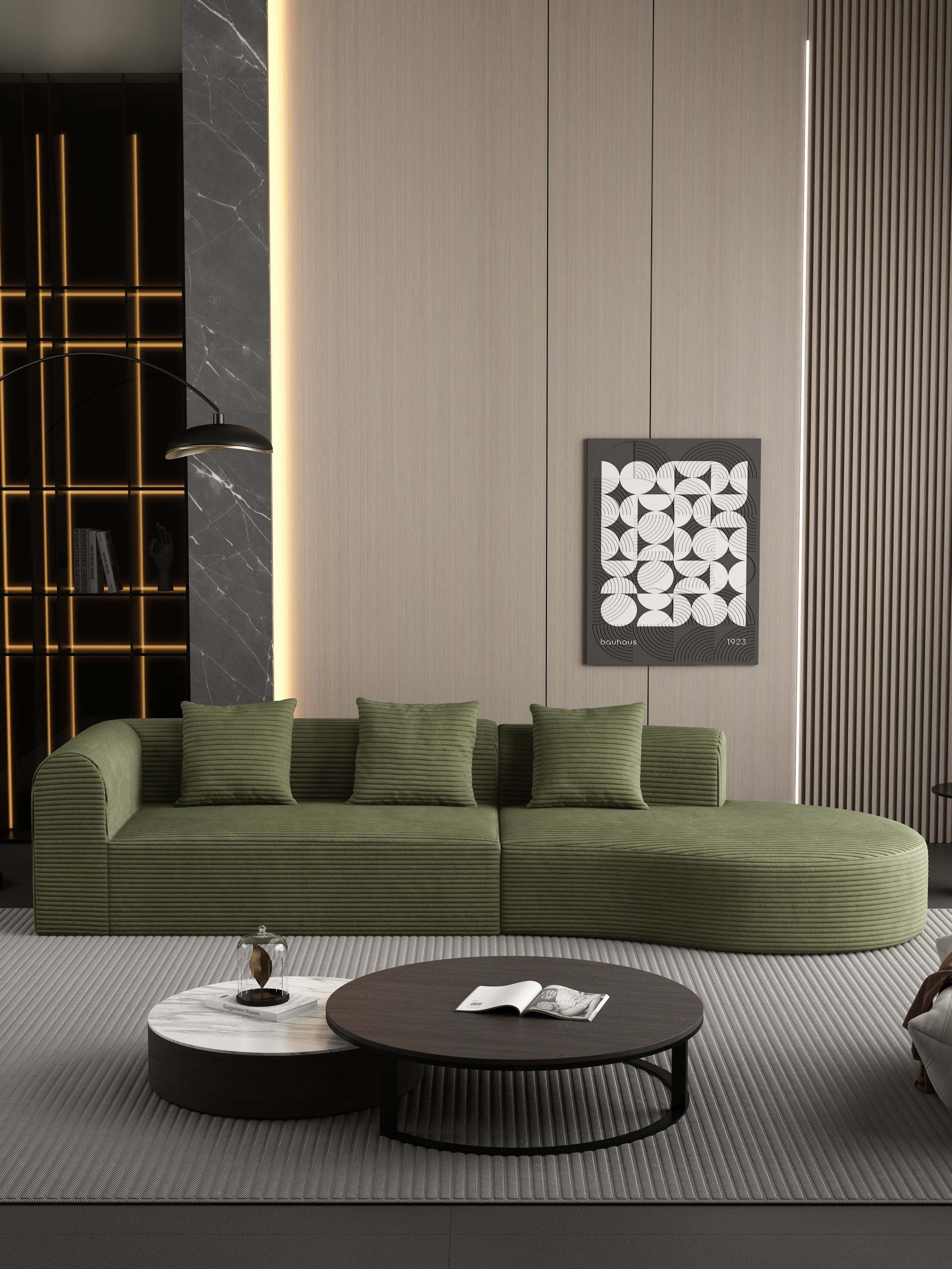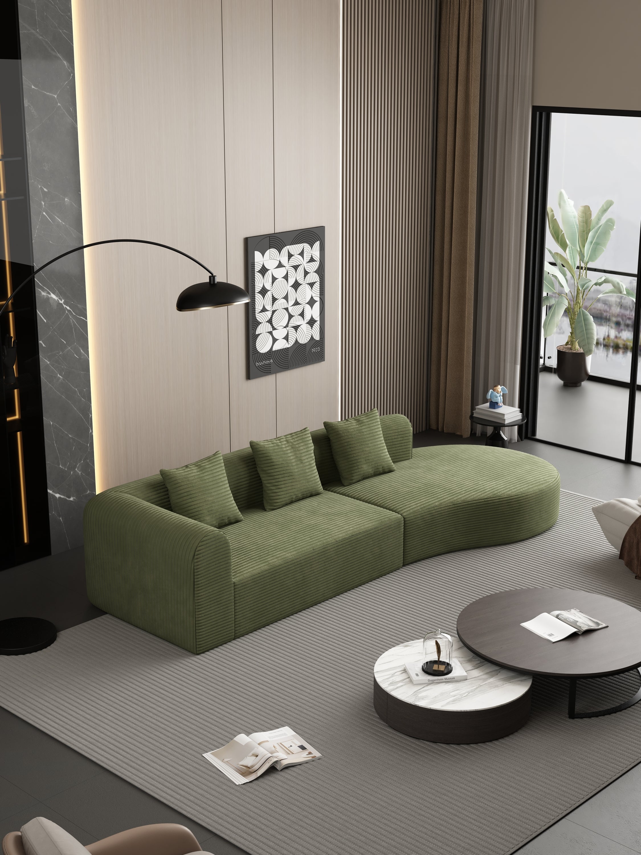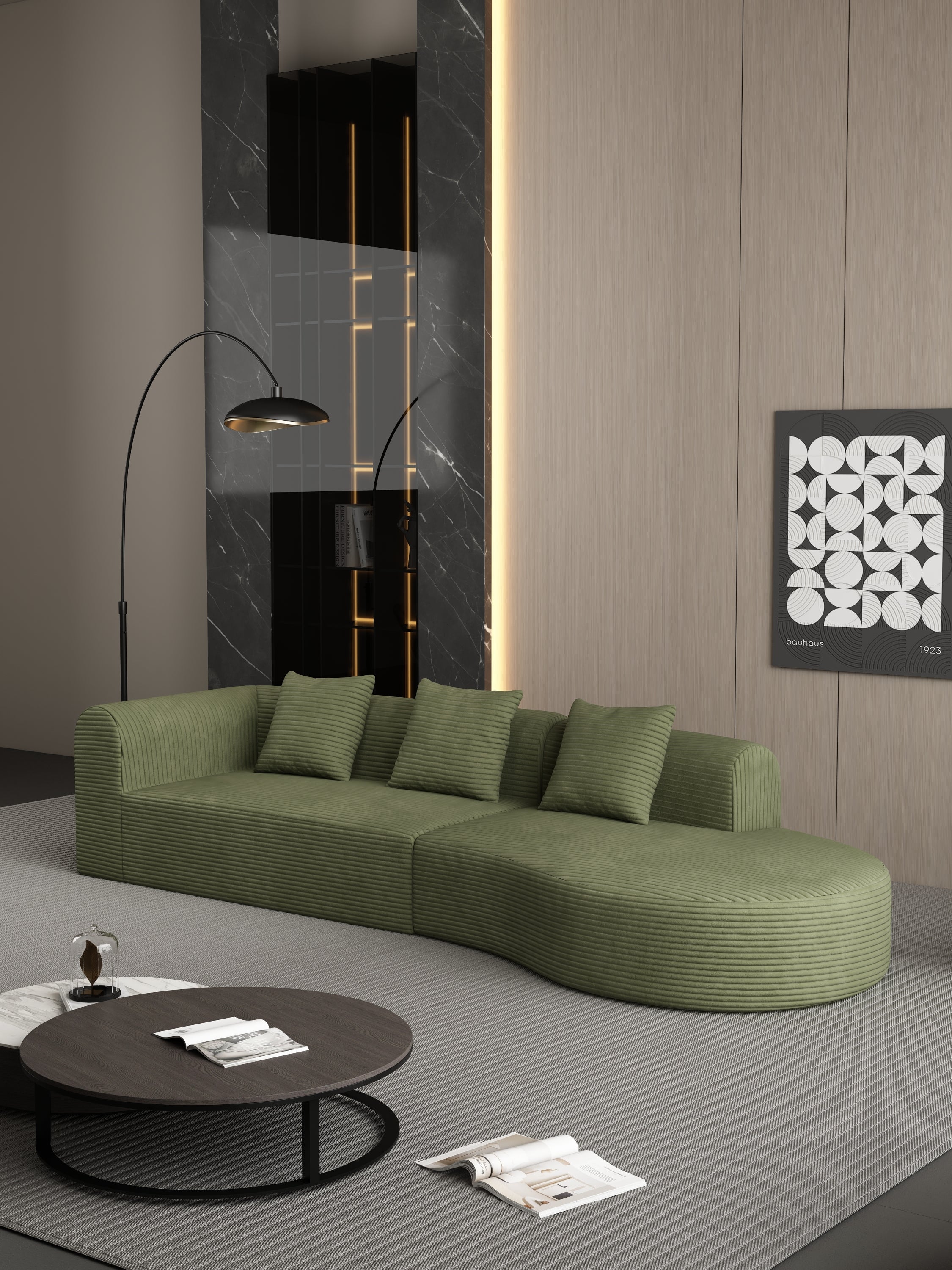 • MINIMALIST, MODULAR DESIGN - The sleek, minimalist design blends seamlessly into any decor, while modular components allow you to easily rearrange the sofa to fit your space. Whether in a living room, apartment, or guest room, the sofa can be easily moved and reconfigured to suit your needs,LUXURY, WRINKLE-RESISTANT CORDROY - This sectional sofa is wrapped in premium, wrinkle-resistant corduroy, combining soft, luxurious comfort with durability.