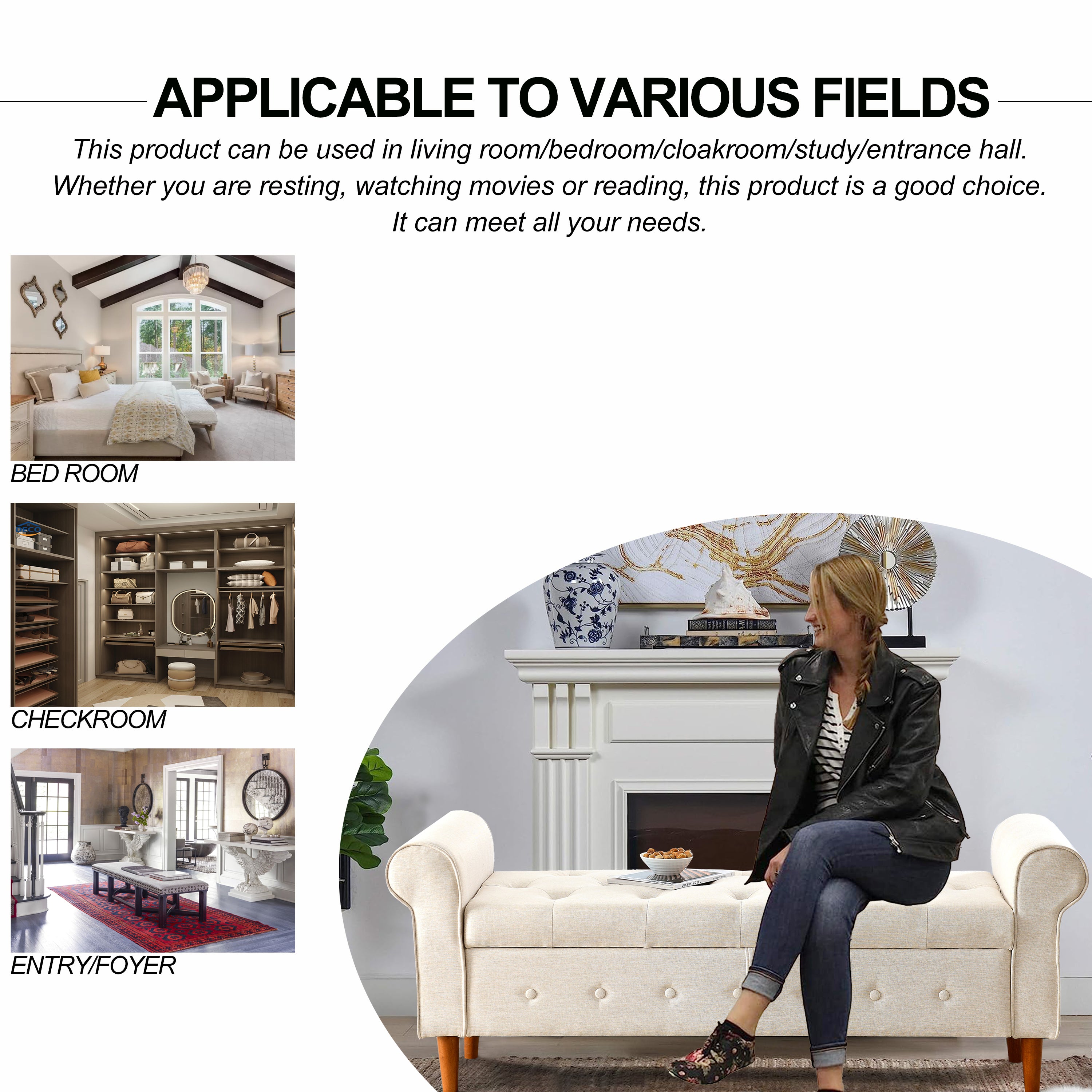 - MULTIFUNCTIONAL USE: This bench can be used as extra seating while putting on shoes, as a bedside bench in the bedroom, as a relaxing bench in front of the fireplace, or as storage for pillows and blankets. This bench uses secure snap hinges so the lid opens automatically while still ensuring a gentle closure. We've also carefully designed the tabs to make it easy to open.