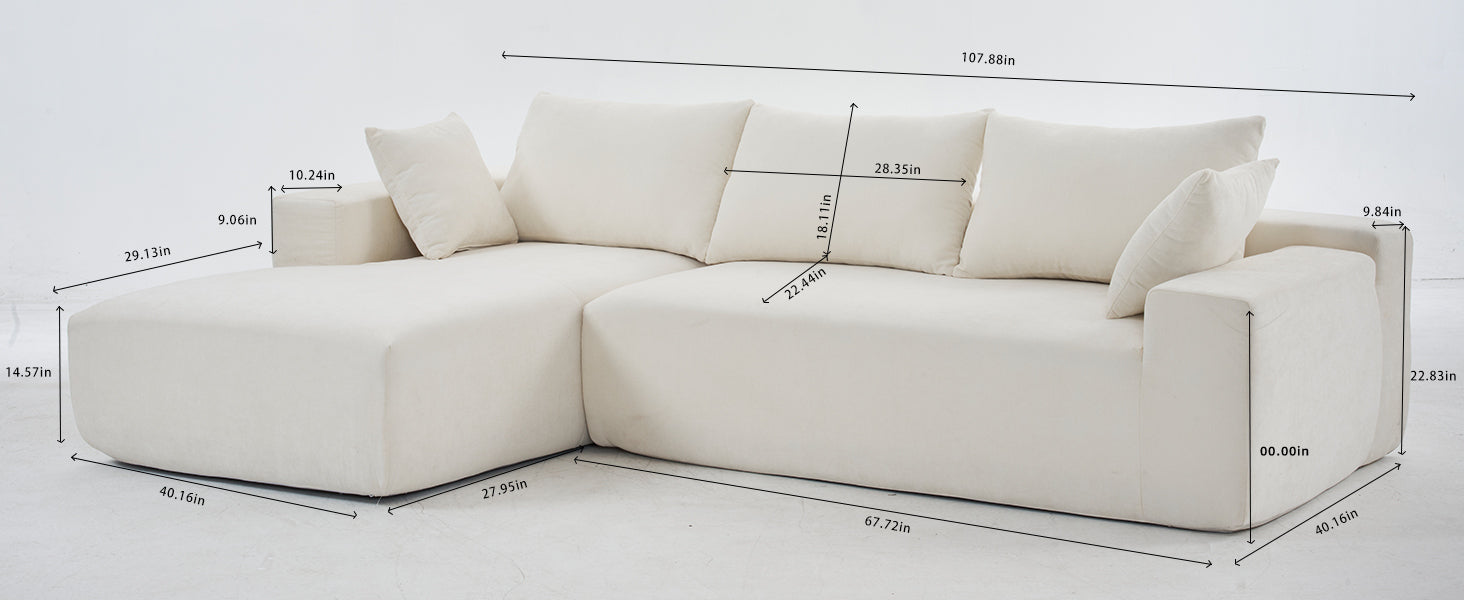 108*68 inch extra-deep modular sofa, cloud sofa, 4-person sofa, sitting and sleeping, living room Chenille modular sofa, no need to assemble, white