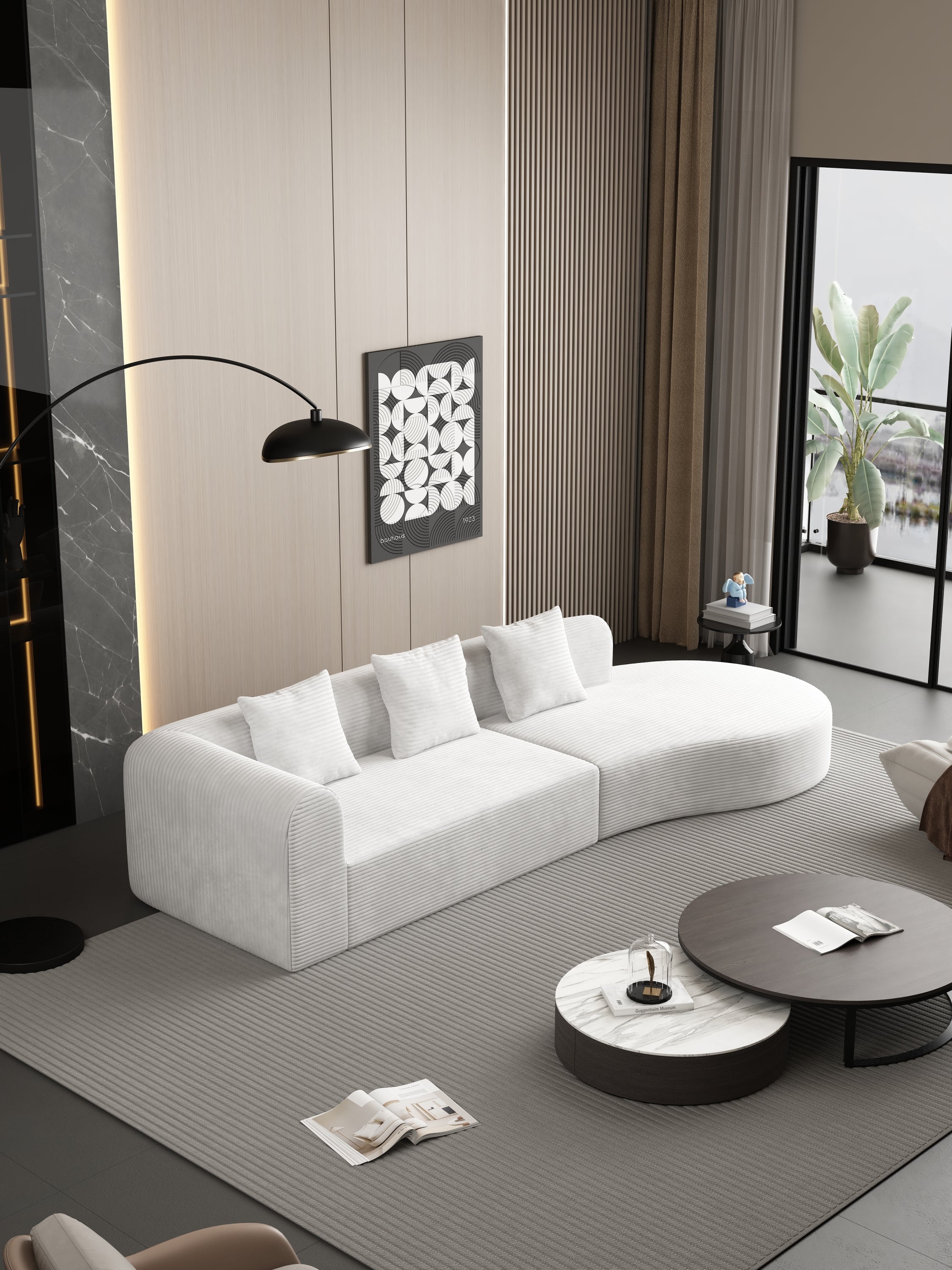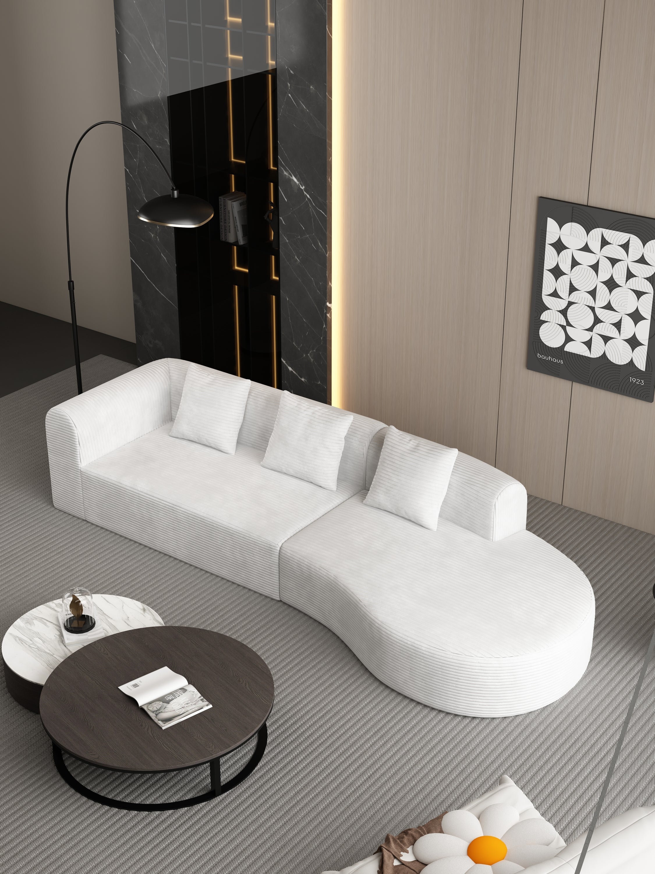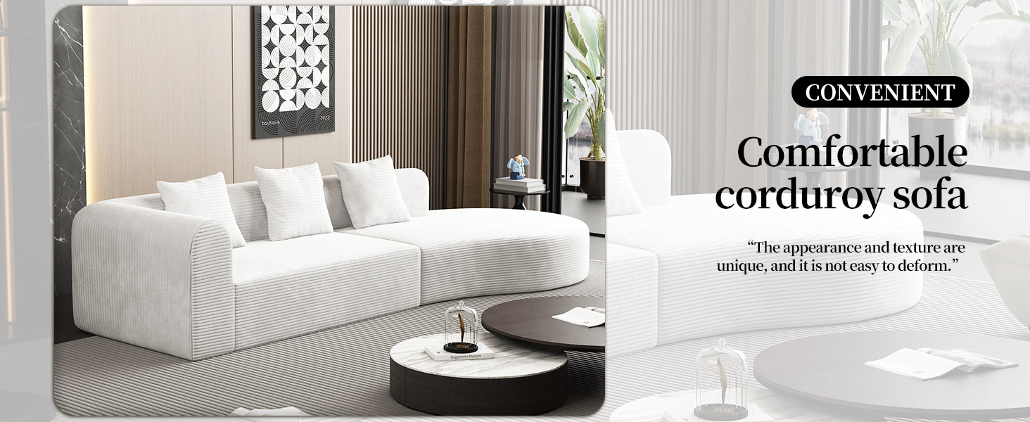 - MINIMALIST, MODULAR DESIGN - The sleek, minimalist design blends seamlessly into any decor, while modular components allow you to easily rearrange the sofa to fit your space. Whether in a living room, apartment, or guest room, the sofa can be easily moved and reconfigured to suit your needs,LUXURY, WRINKLE-RESISTANT CORDROY - This sectional sofa is wrapped in premium, wrinkle-resistant corduroy, combining soft, luxurious comfort with durability.