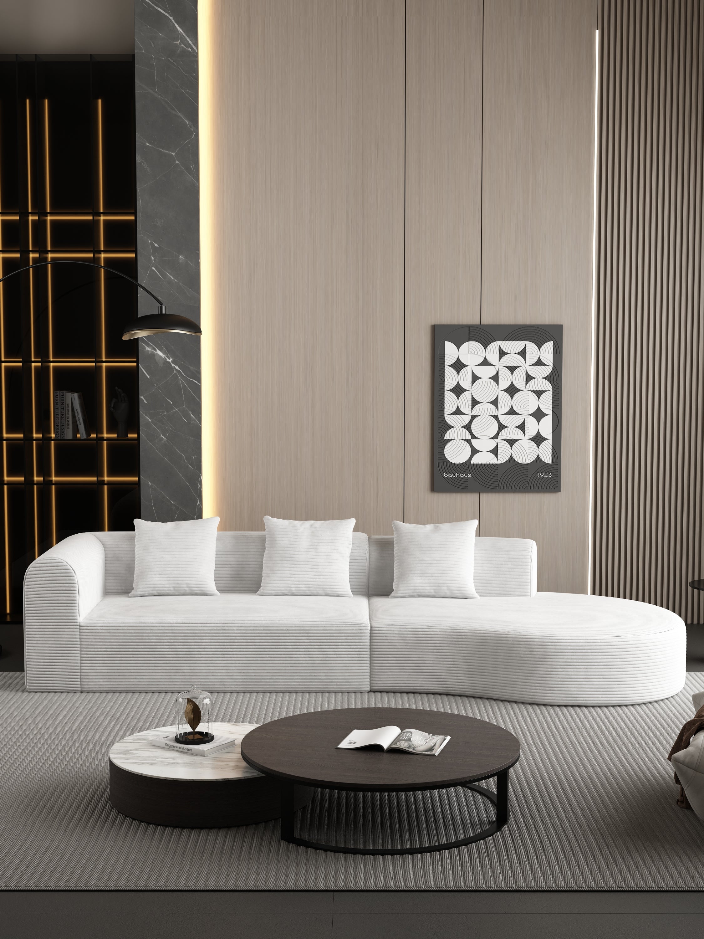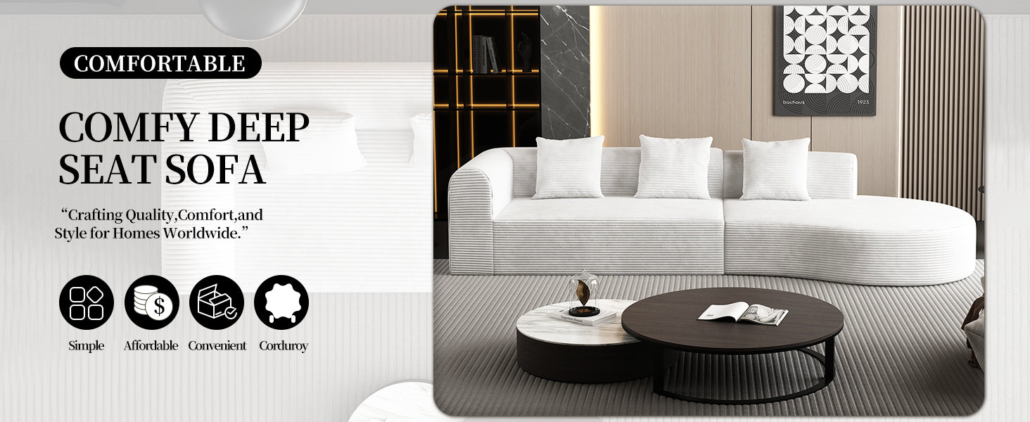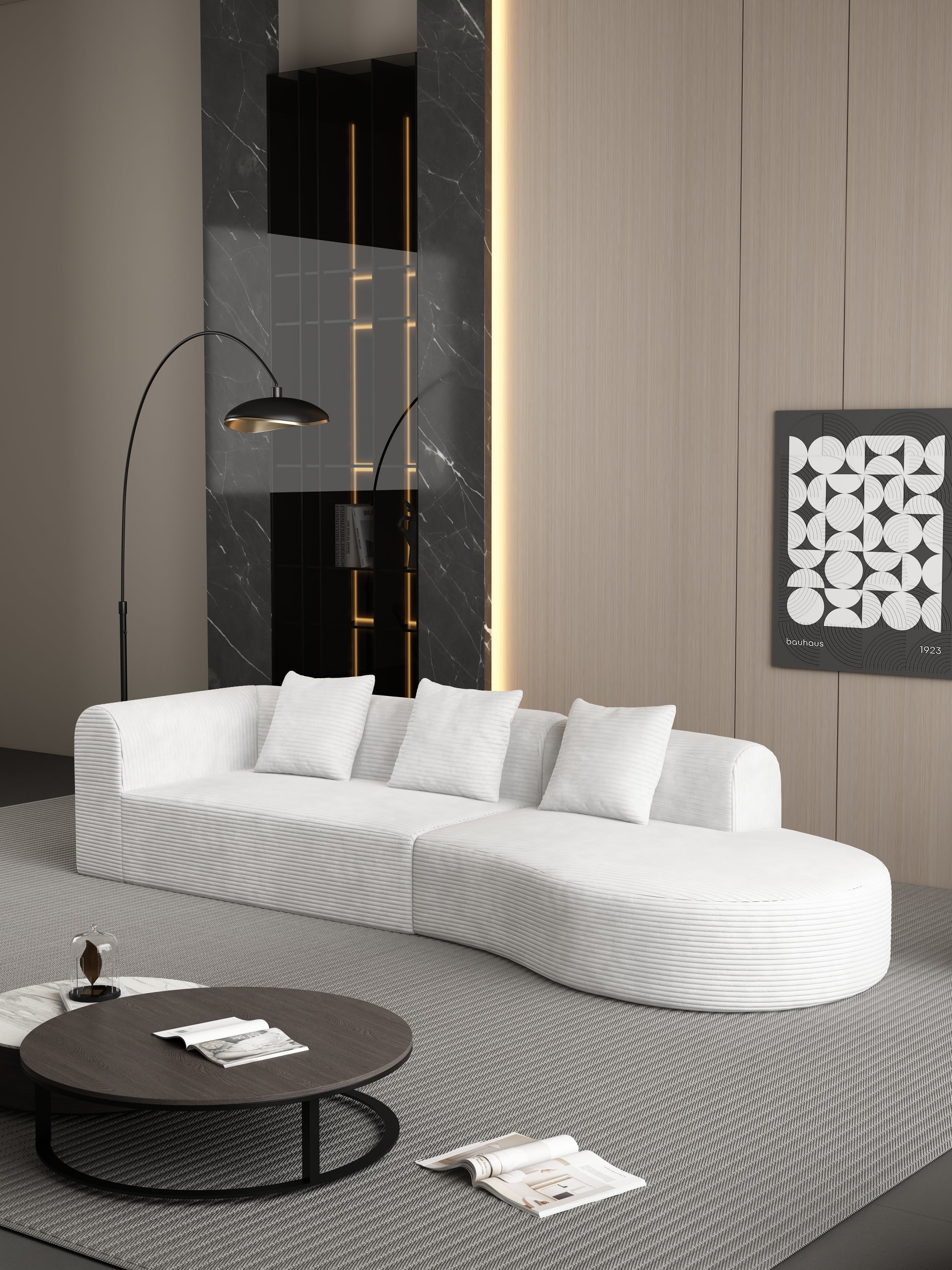 - MINIMALIST, MODULAR DESIGN - The sleek, minimalist design blends seamlessly into any decor, while modular components allow you to easily rearrange the sofa to fit your space. Whether in a living room, apartment, or guest room, the sofa can be easily moved and reconfigured to suit your needs,LUXURY, WRINKLE-RESISTANT CORDROY - This sectional sofa is wrapped in premium, wrinkle-resistant corduroy, combining soft, luxurious comfort with durability.