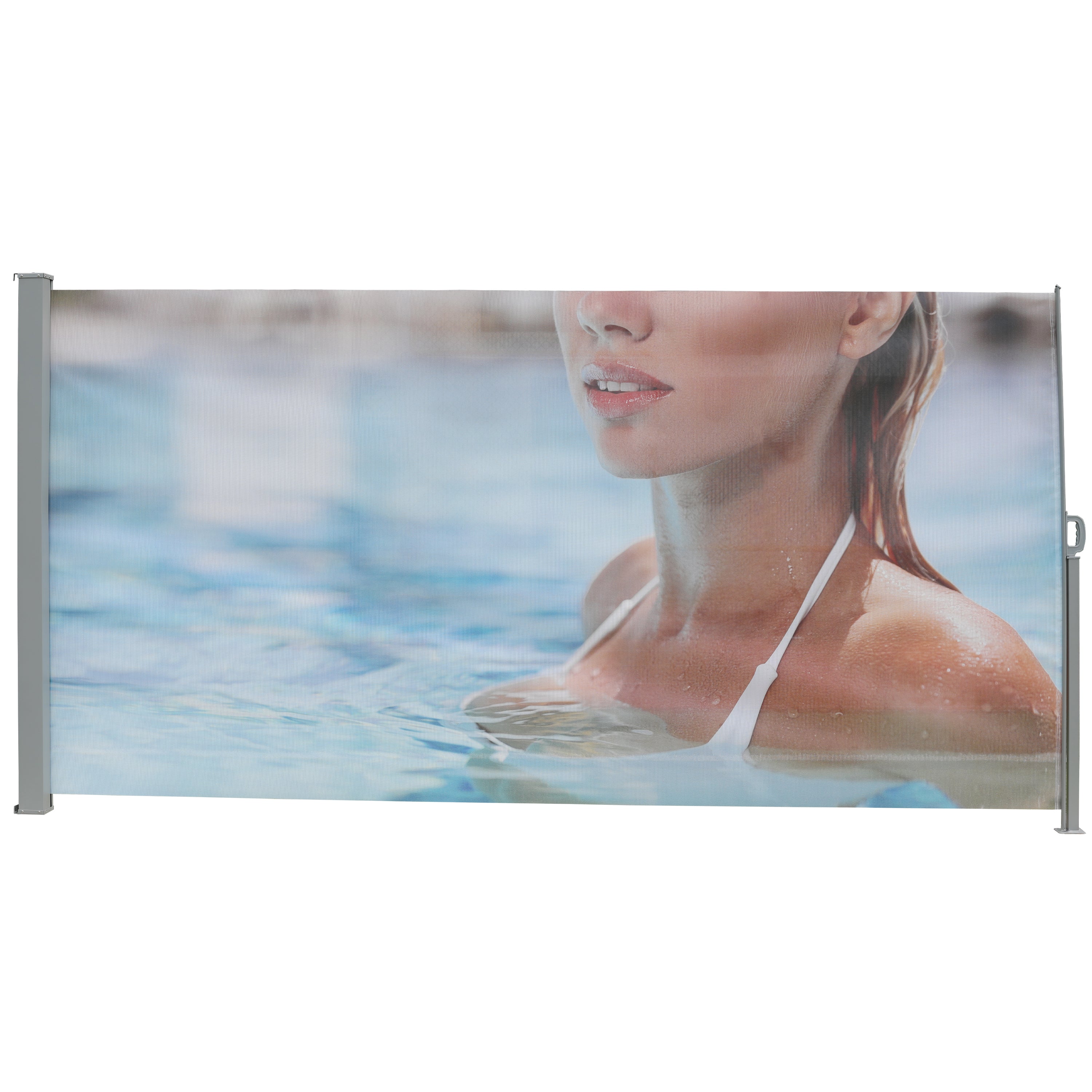 Product Description: Create your personal outdoor sanctuary with this 71"x138" retractable side awning. Its semi-transparent fabric, featuring fade-resistant UV printing, offers the perfect balance of privacy and light, while blocking wind, dust, and direct sunlight. The fabric has an impressive UPF50+ rating, providing superior protection from harmful UV rays. The durable, rust-resistant aluminum frame and easy-to-use spring-loaded mechanism allow you to smoothly extend the awning up to 138 inches and lock it securely in place. Perfect for a garden, balcony, or by the swimming pool, this awning includes all the necessary hardware for a simple wall-mount installation.