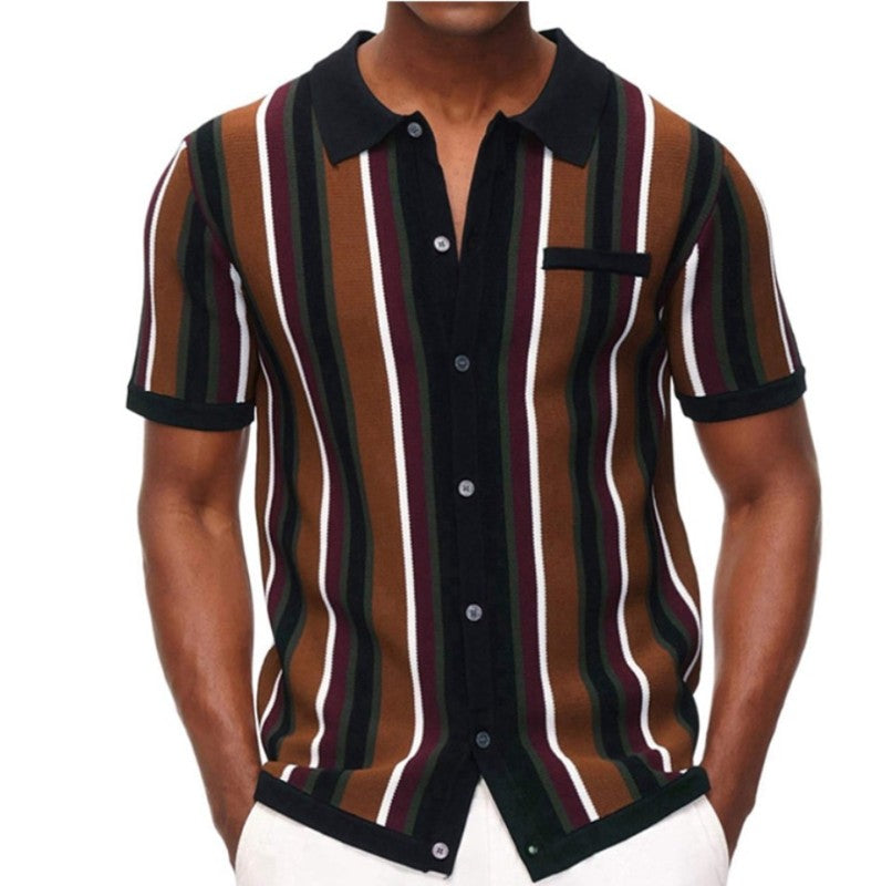 Men's Color Contrast Stripe Short Sleeve Shirt
