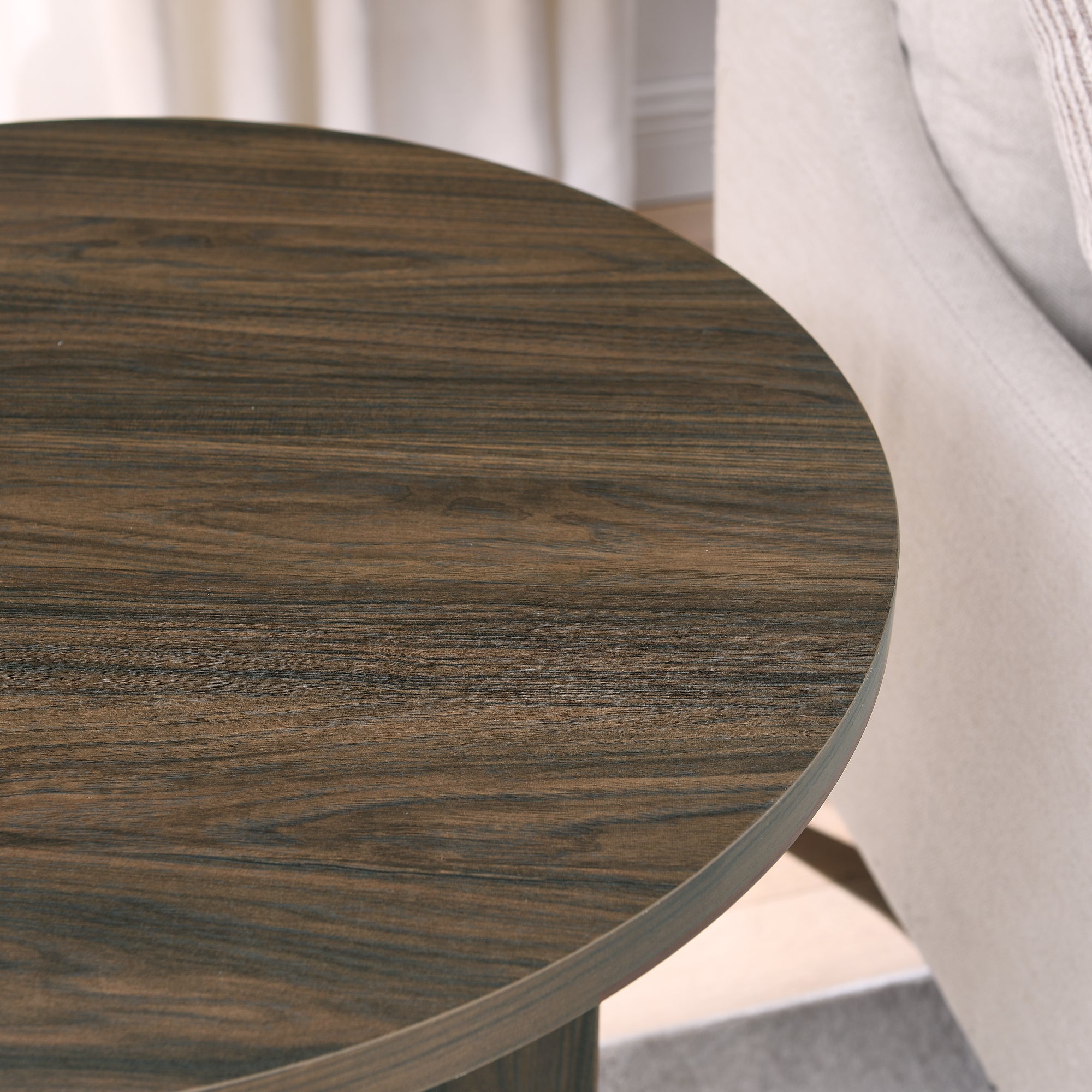• This coffee table is made of high-quality materials. The overall material is high-density MDF board, and the surface uses triamine veneer technology. Waterproof, moisture-proof and easy to clean. The table legs are made of thickened MDF high-density board, which has a solid structure and full texture.
