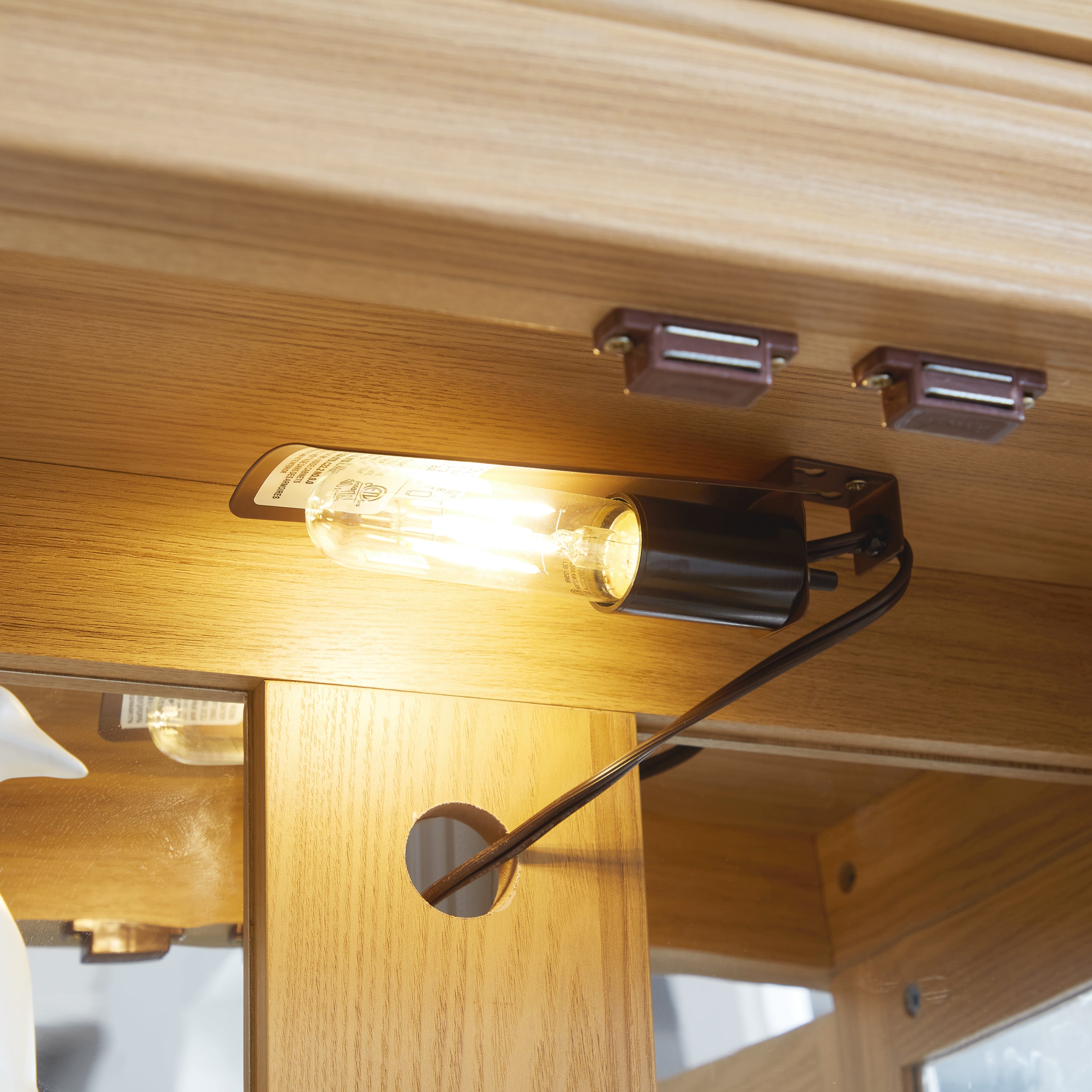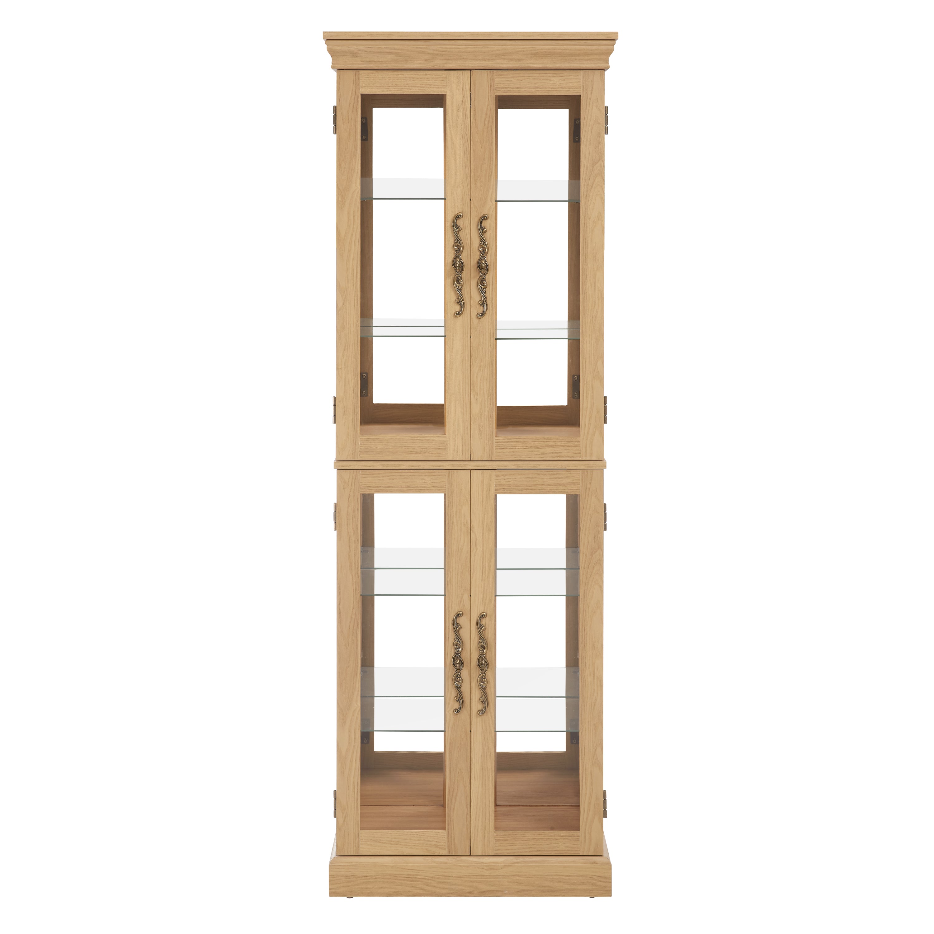 Lighted Glass Curio Display Cabinet,Display Cabinet,Glass Storage Cabinet Glass Wine cabinet Wood Frame Toy Display for Living Room, Kitchen, Pantry light bulb included Light oak