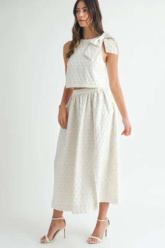 MABLE Taffeta Polka Dot Shoulder Ribbon Top and Skirt Set