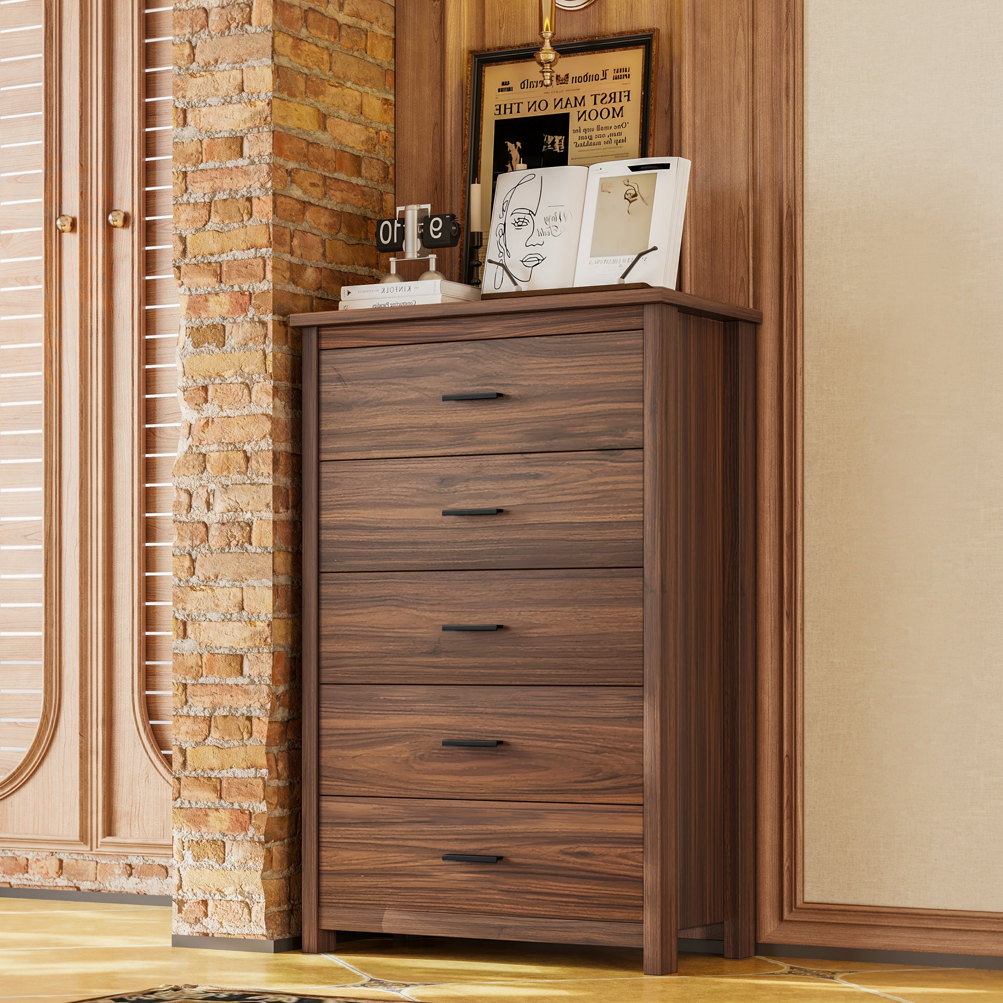 - 4.Dresser with 5 Storage Drawers: The matching dresser comes with 5 spacious drawers, giving you plenty of room to store all your personal belongings. Simply place a mirror on top, and it easily doubles as a convenient vanity.